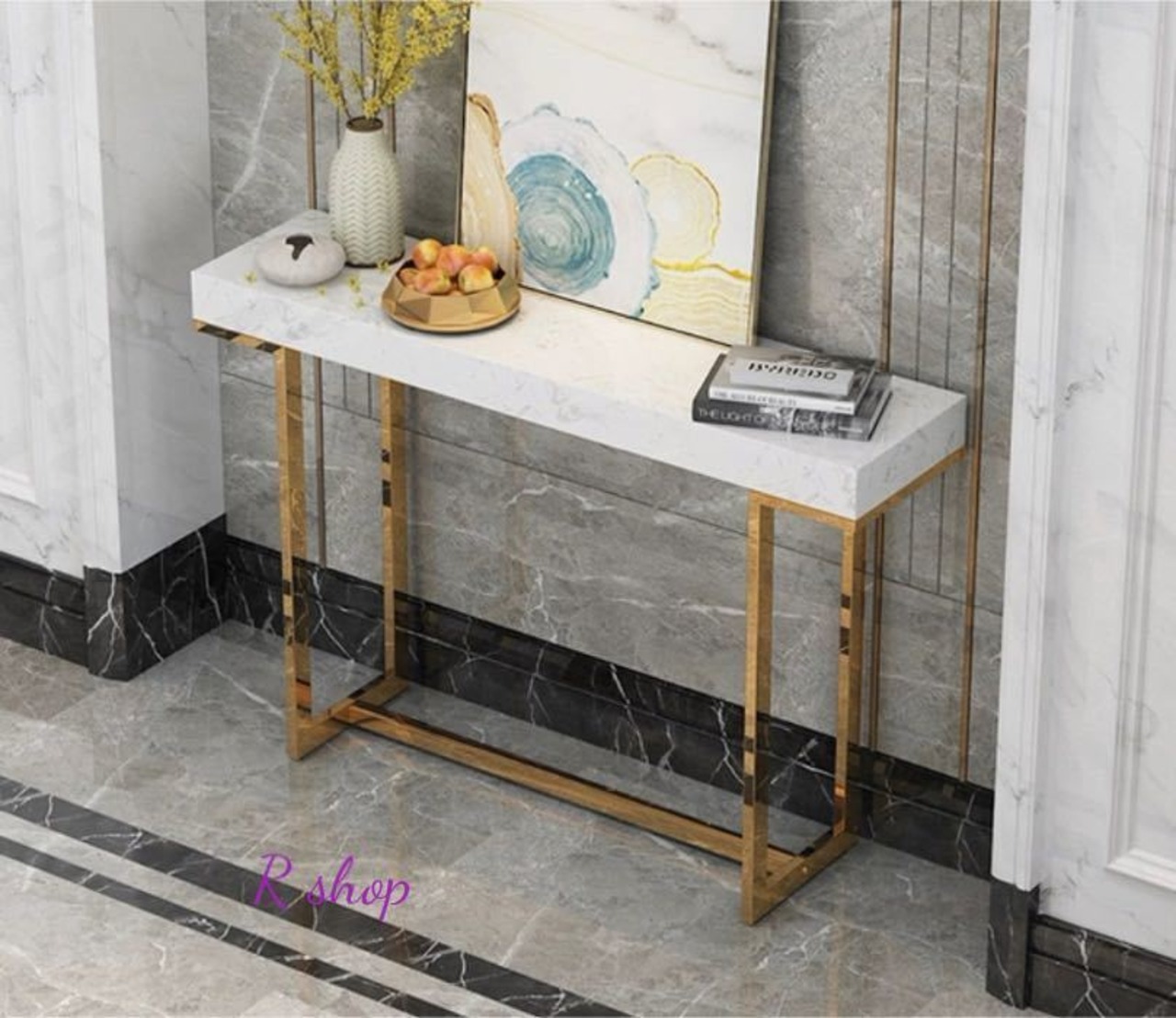 高級サイドテーブル 大理石コンソールテーブル ,玄関テーブル 花台 電話台 アンティーク調デザイン 幅80cm