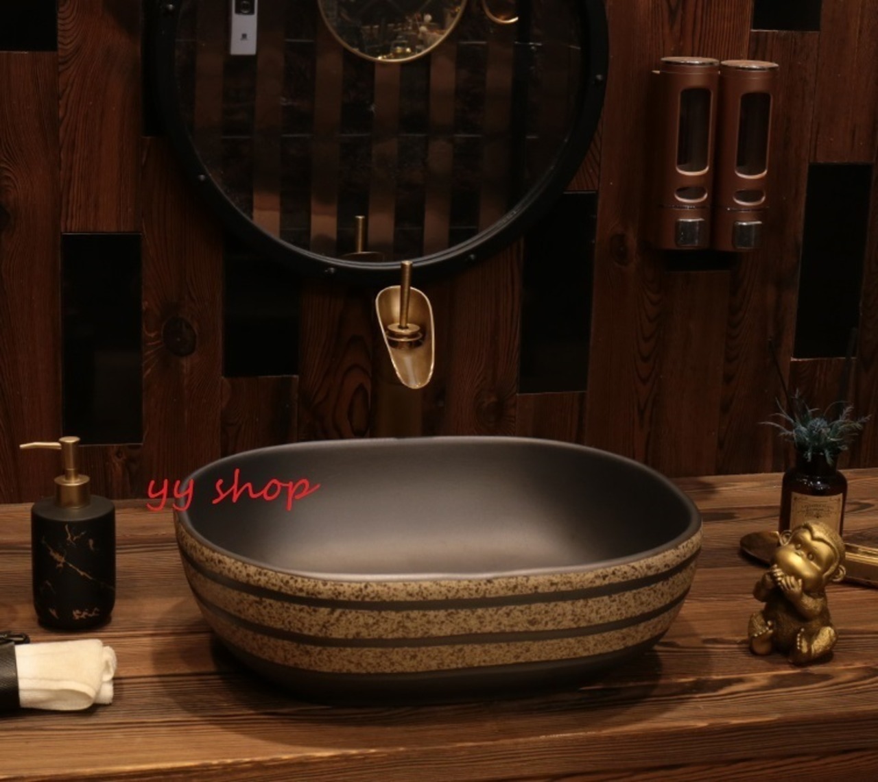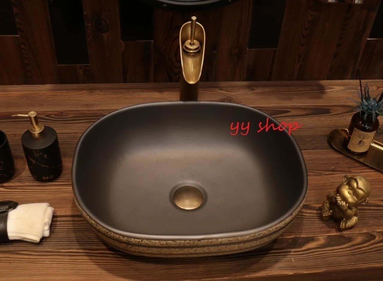 0121F10豪華洗面ボウルセット陶器洗面台 トイレ 手水鉢 手洗器 手洗い鉢 洗面器 蛇口 排水金具付き