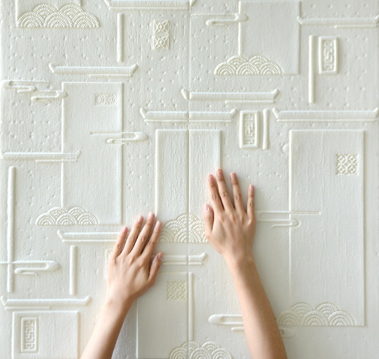 ◆裏面に粘着性があり、はがすと、壁に貼ることができる3D壁紙