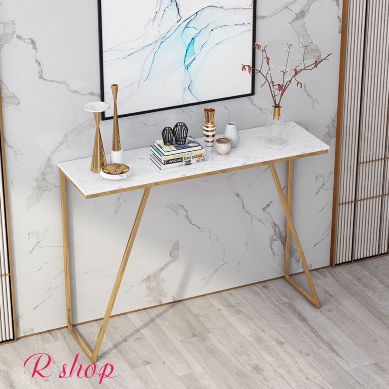 高級大理石サイドテーブル コンソールテーブル 玄関テーブル 花台 電話台 アンティーク調デザイン 幅80cm