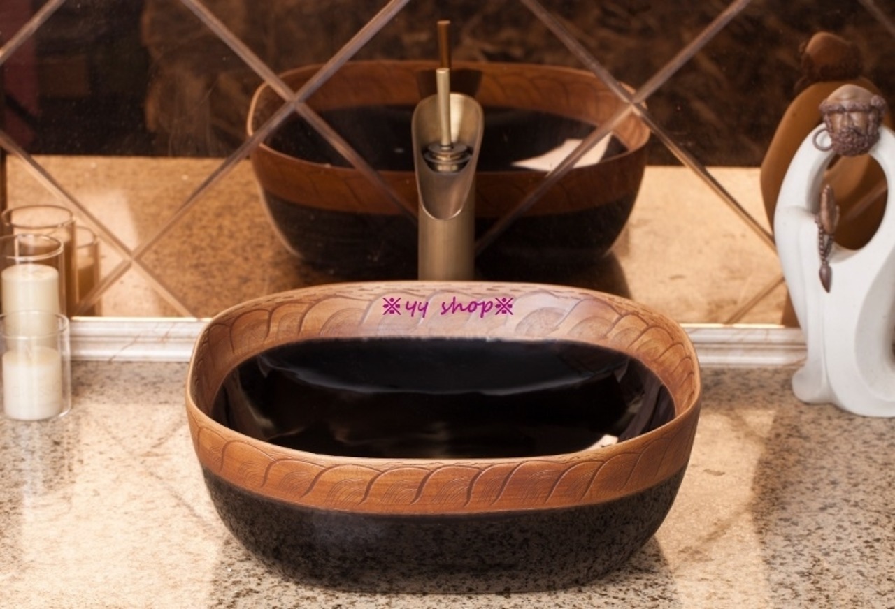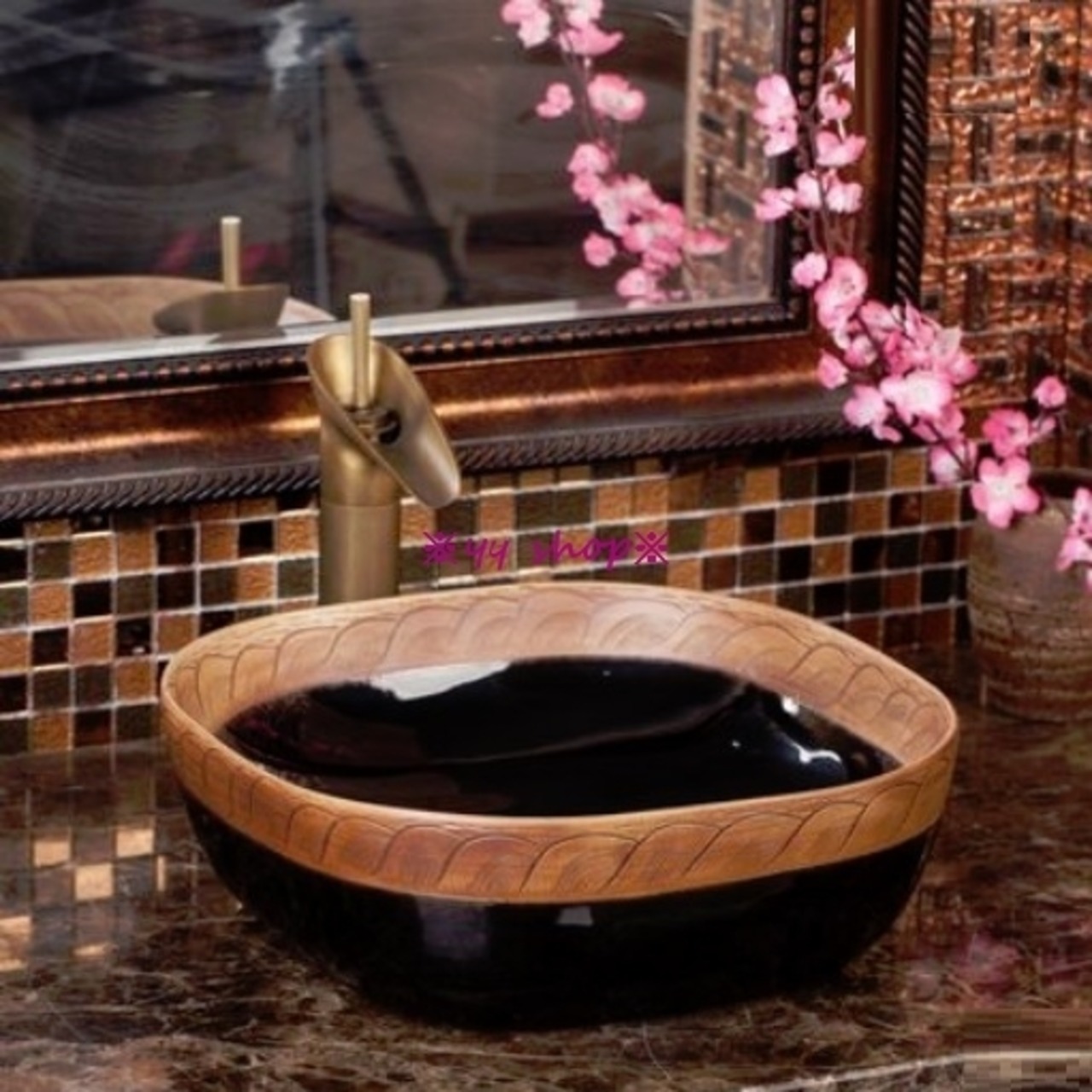 F2-1 豪華洗面ボウルセット陶器洗面台 トイレ 手水鉢 手洗器 手洗い鉢 洗面器 蛇口 排水金具付き