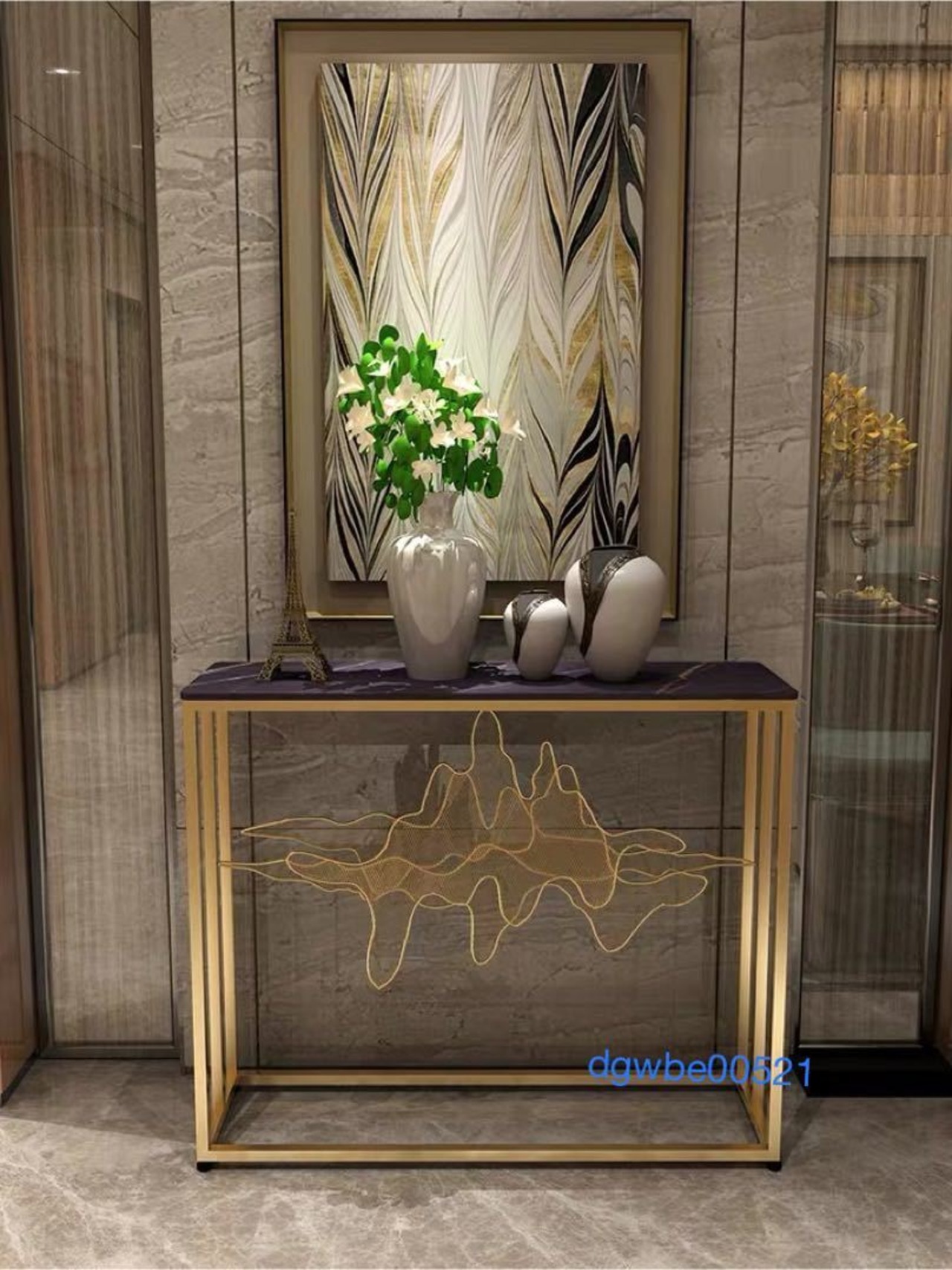 コンソールテーブル .玄関テーブル 花台 電話台 アンティーク調デザイン幅100cm 高級大理石サイドテーブ