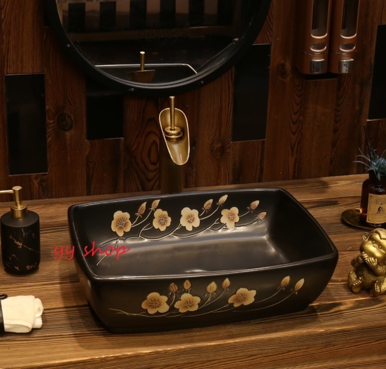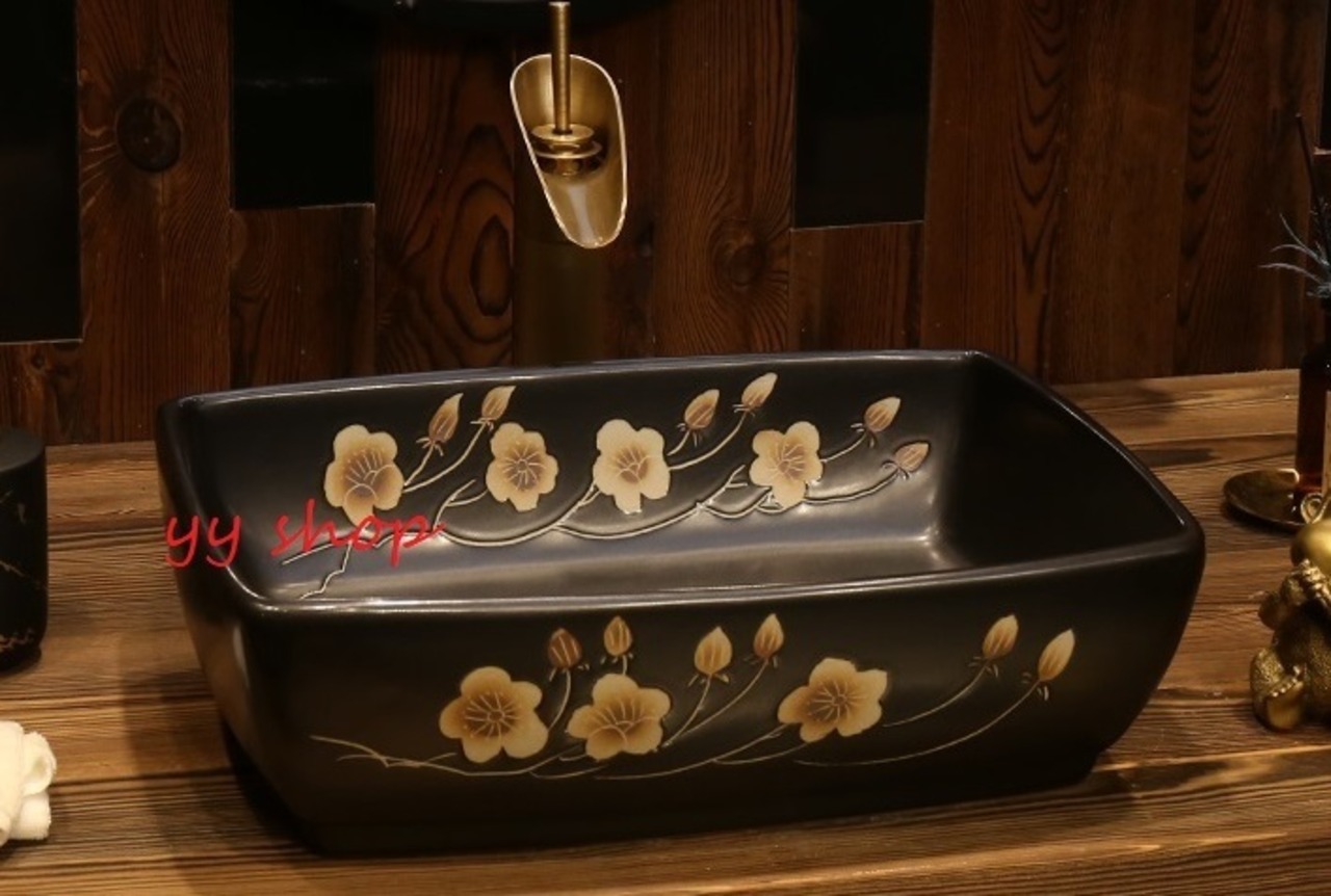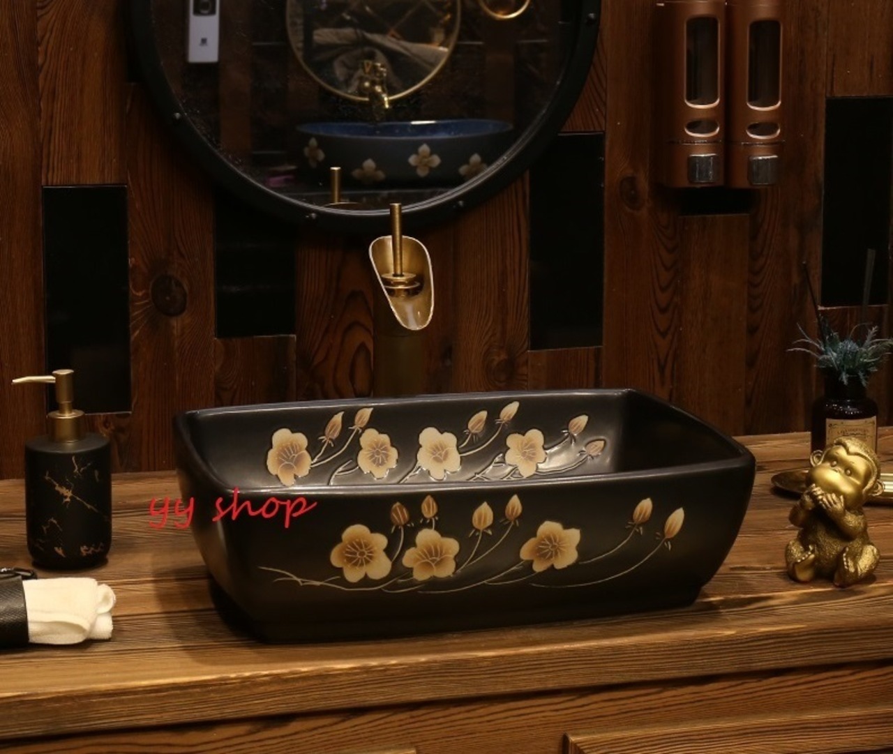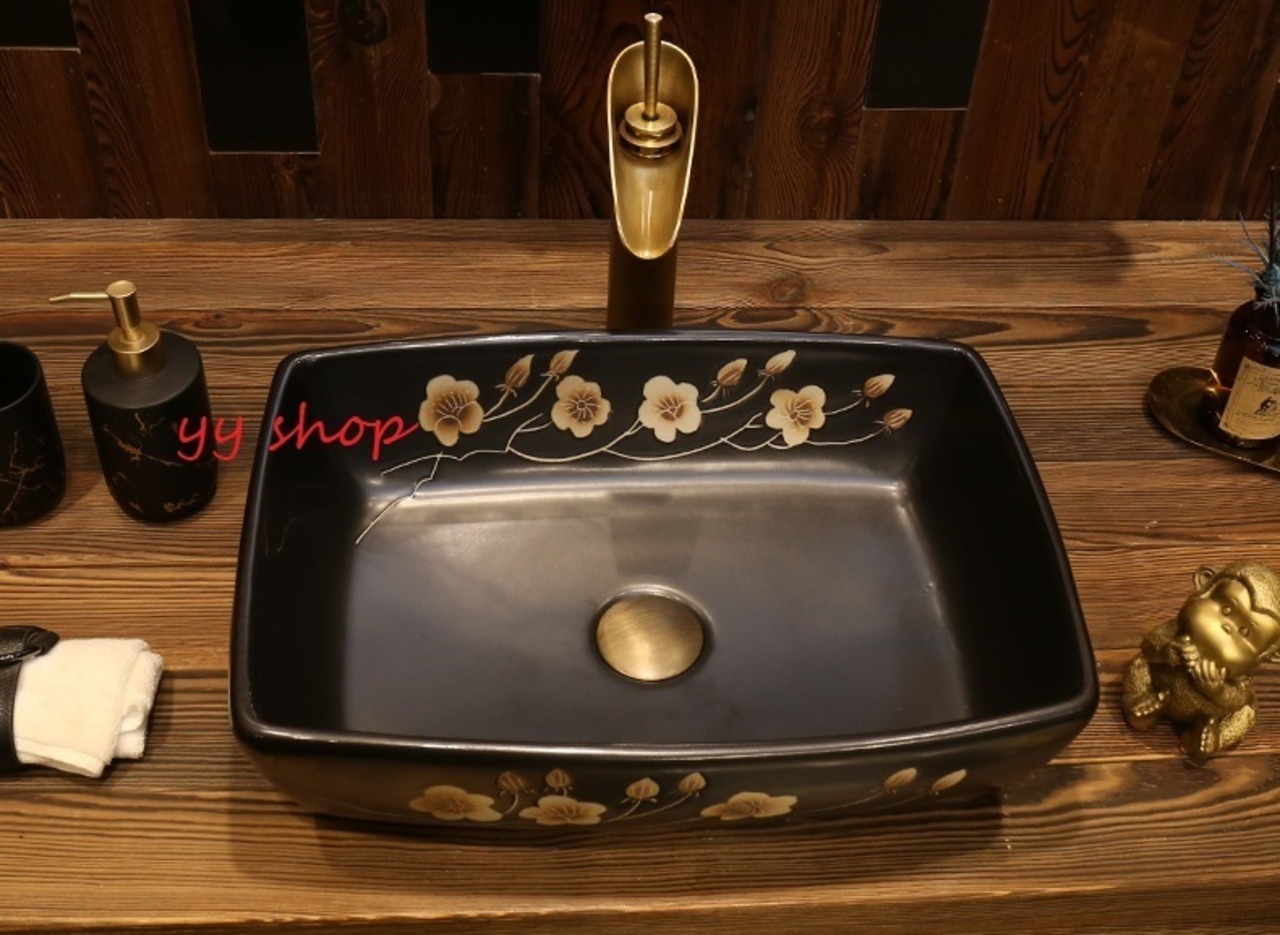 0121F15豪華洗面ボウルセット陶器洗面台 トイレ 手水鉢 手洗器 手洗い鉢 洗面器 蛇口 排水金具付き