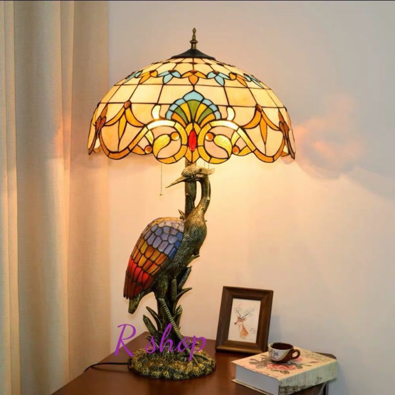 ステンドグラスランプ 卓上スタンド 豪華テーブルランプ 卓上照明 ガラス工芸スタンド 高さ85cm