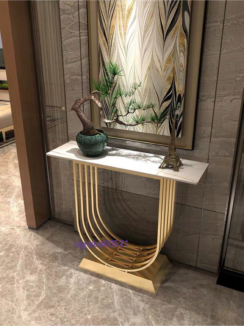 コンソールテーブル .玄関テーブル 花台 電話台 アンティーク調デザイン幅80cm 高級大理石サイドテーブル