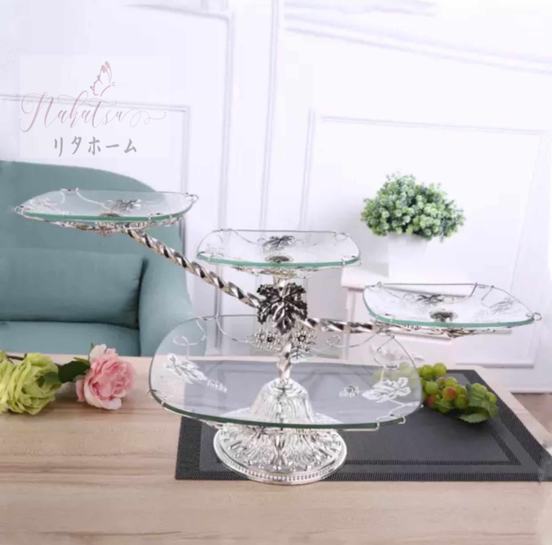 高級果物皿 ガラスコンポート 豪華皿 お菓子皿 ヨーロッパ調フルーツプレート