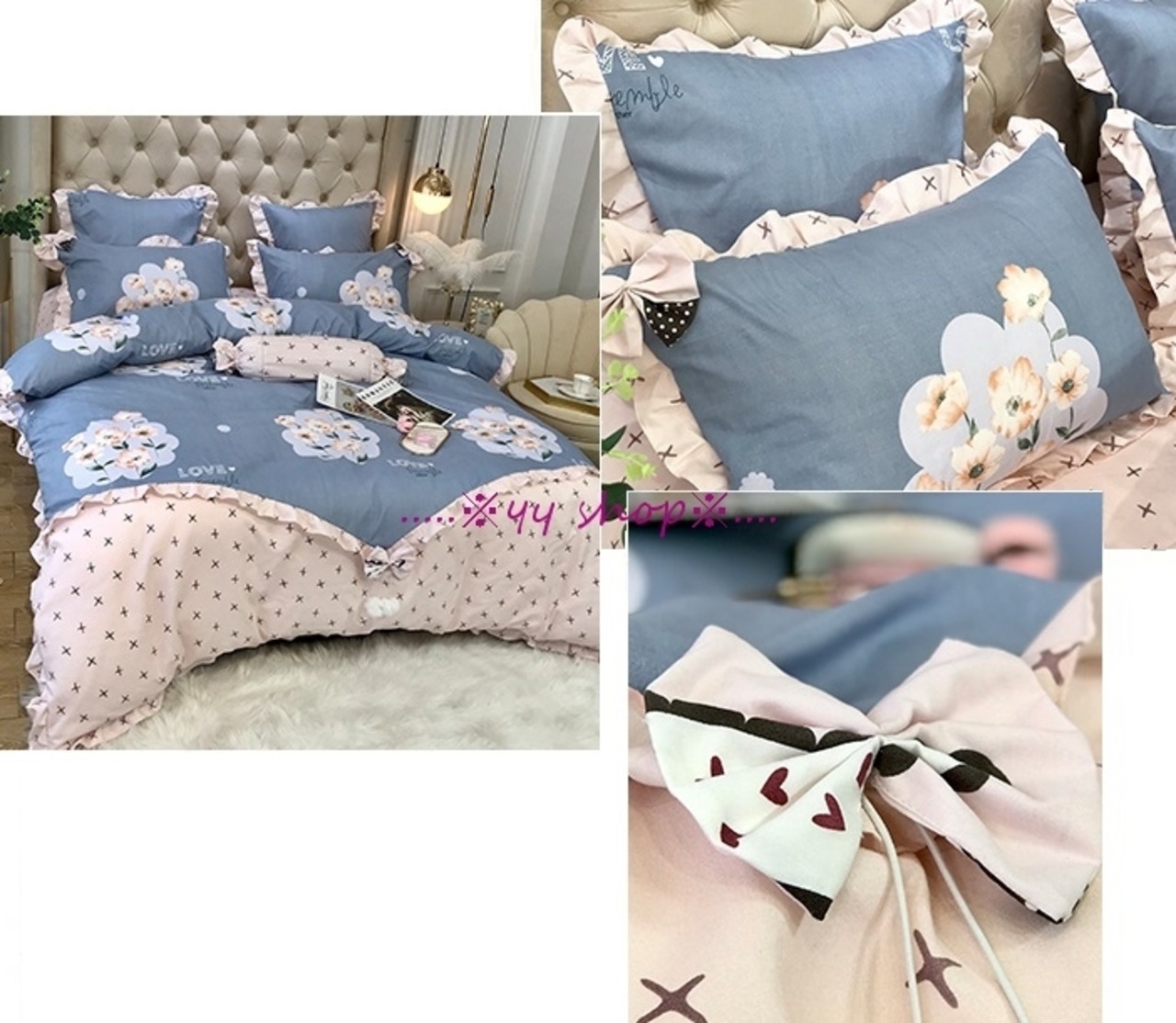 1120BS11-11新品 高級ワイドダブル ベッド用品4点セット 寝具 ボックスシーツ 枕カバー掛け布団カバー ベッドカバー