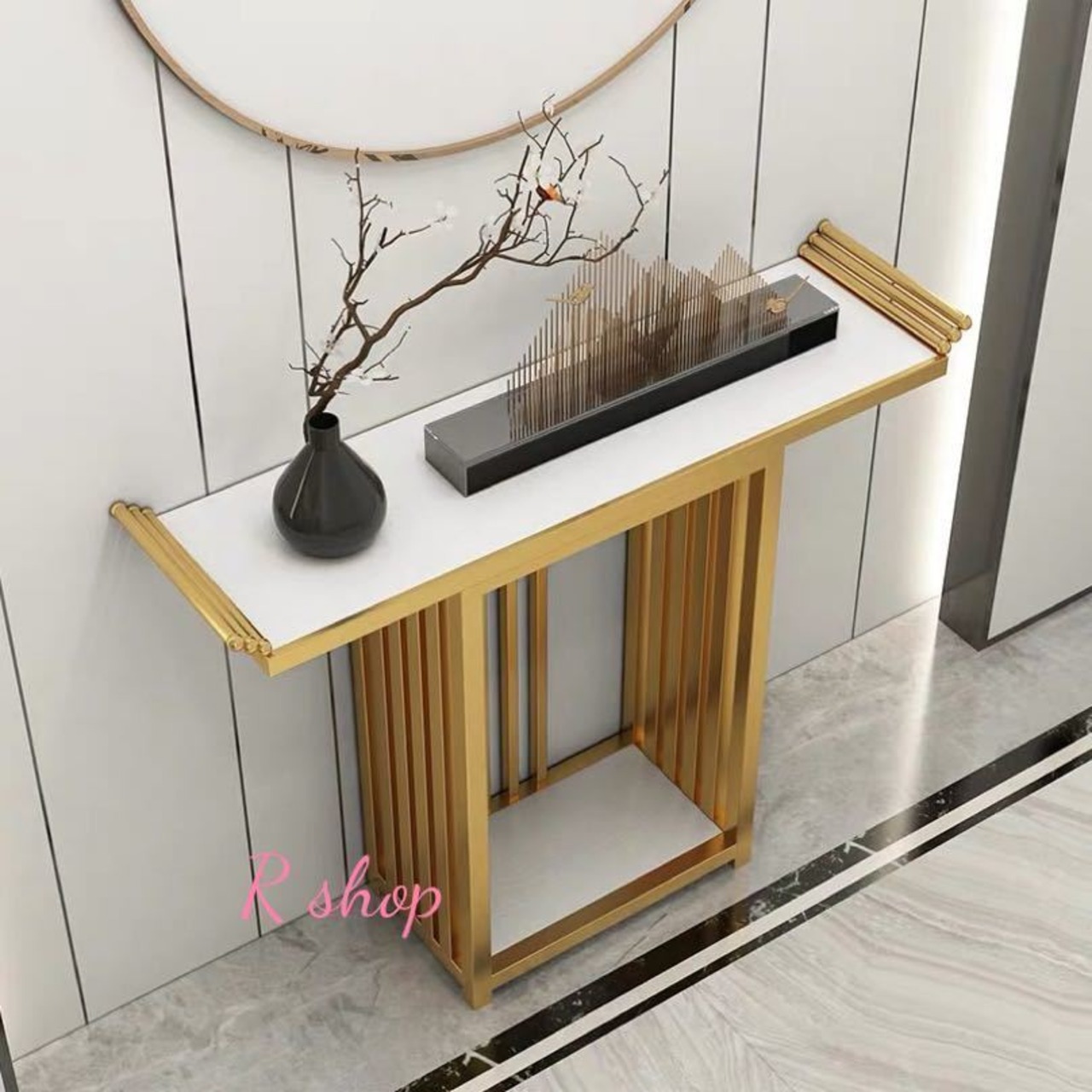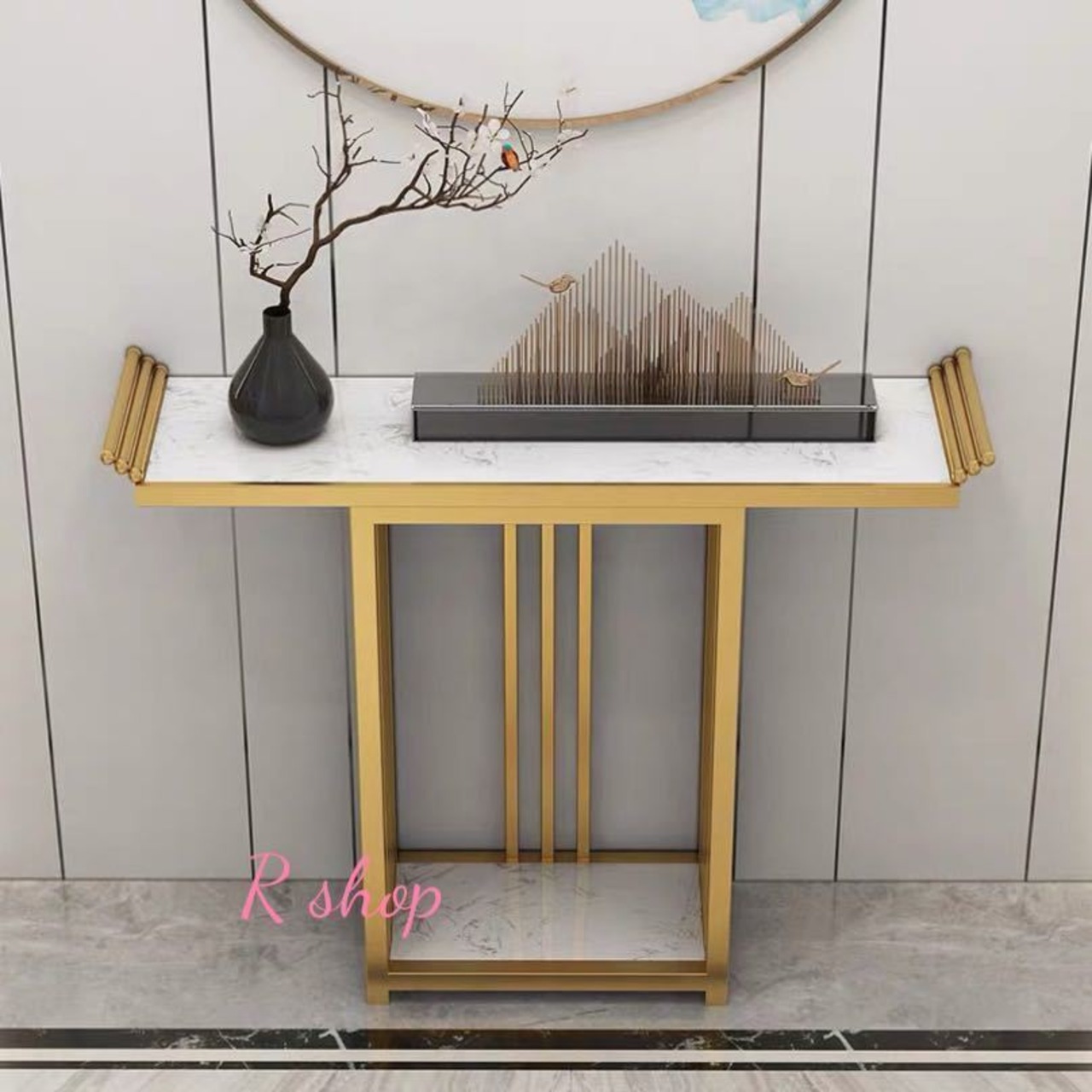大理石コンソールテーブル .玄関テーブル 花台 電話台 アンティーク調デザイン幅100cm 高級サイドテーブル