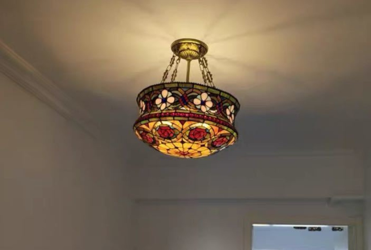 1-1265豪華天井照明ステンドグラスランプ ペンダントライト ガラス工芸品 ステンドグラス