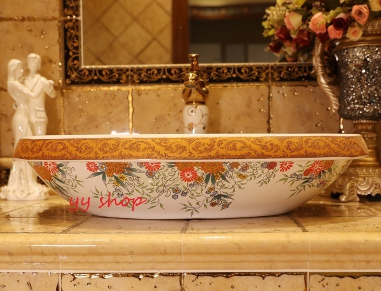 0121F28豪華洗面ボウルセット陶器洗面台 トイレ 手水鉢 手洗器 手洗い鉢 洗面器 蛇口 排水金具付き