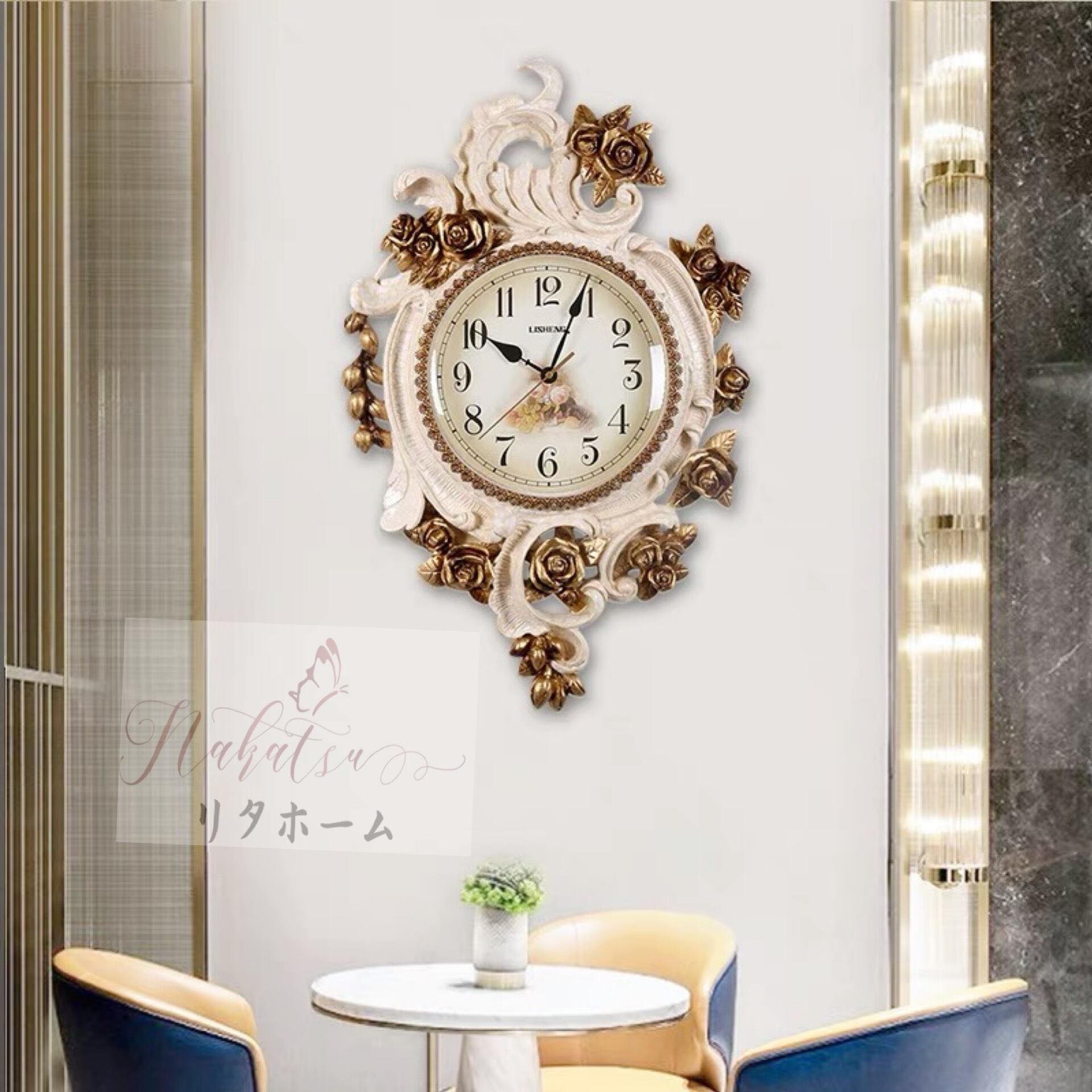 北歐風 英国貴族風 クロック。壁掛け時計 かけ時計ヨーロッパ風.花柄姫系雑貨