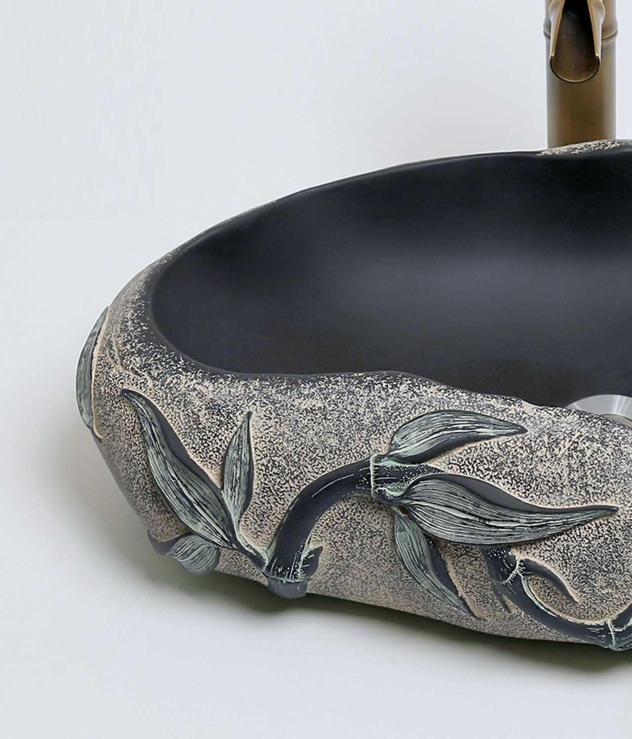 0121F8豪華洗面ボウルセット陶器洗面台 トイレ 手水鉢 手洗器 手洗い鉢 洗面器 蛇口 排水金具付き
