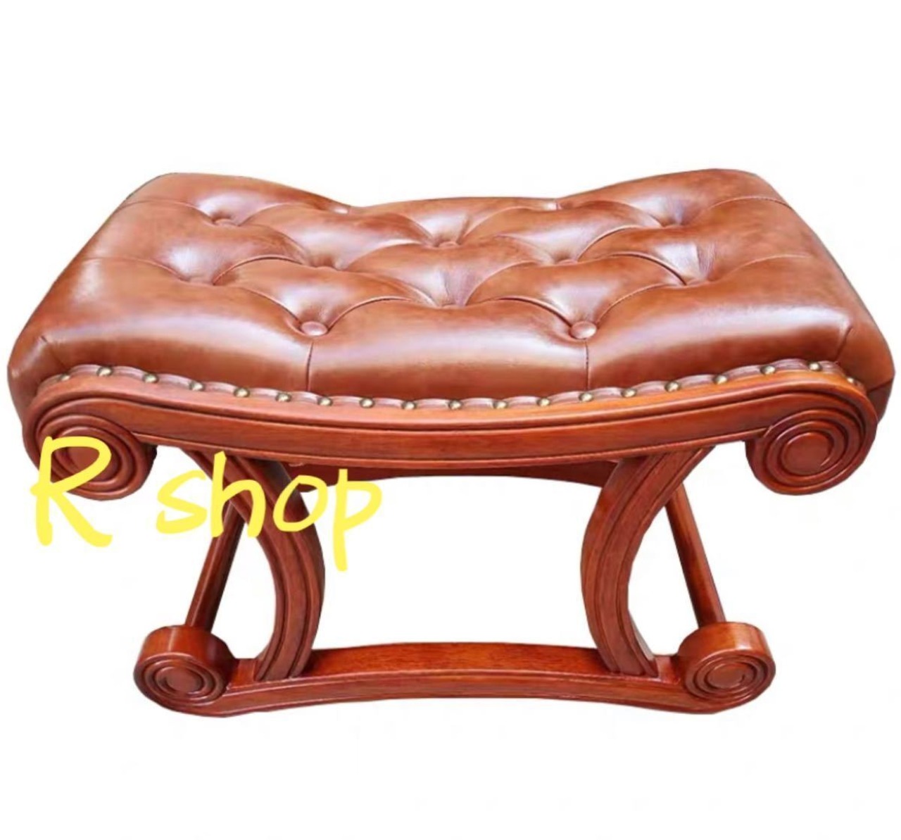 高級本革スツール チェアスツール .ロココ調 姫系 レザー椅子 北欧系 アンティーク調 52×30×40cm
