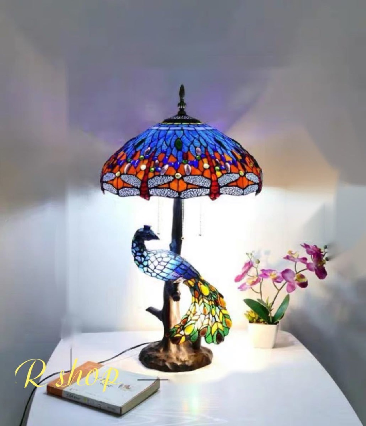 高級ガラス工芸スタンド .ステンドグラスランプ 卓上スタンド 豪華テーブルランプ 卓上照明