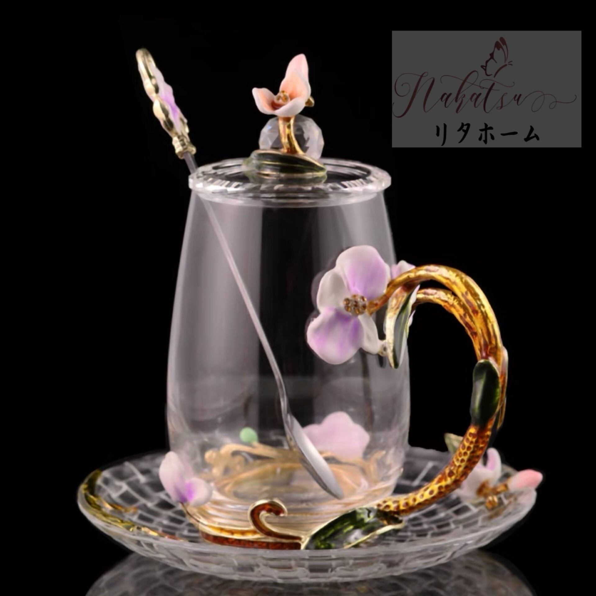 花柄ガラス製カップ&ソーサー1客 コーヒーカップ