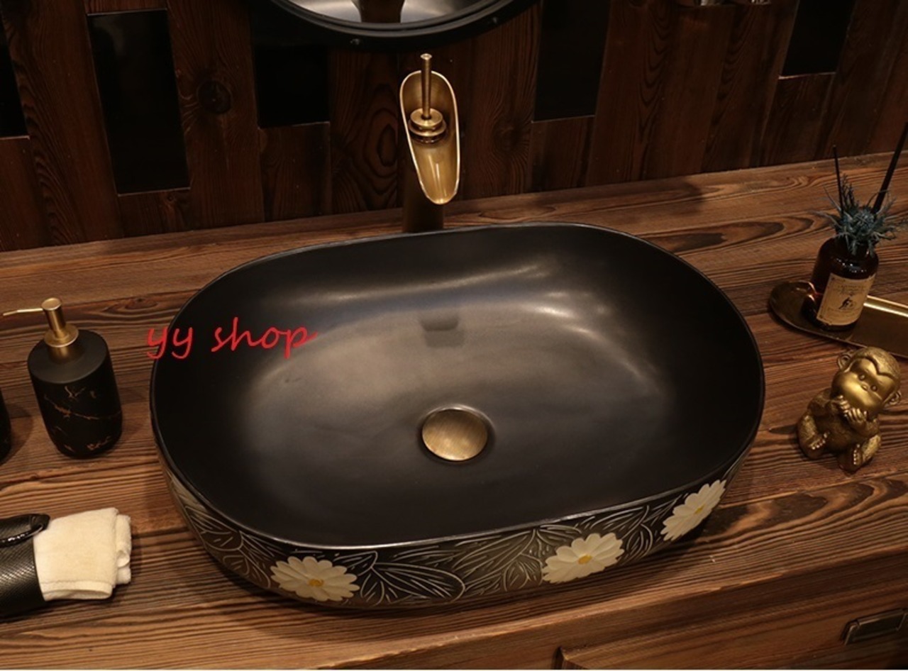 0121F11豪華洗面ボウルセット陶器洗面台 トイレ 手水鉢 手洗器 手洗い鉢 洗面器 蛇口 排水金具付き