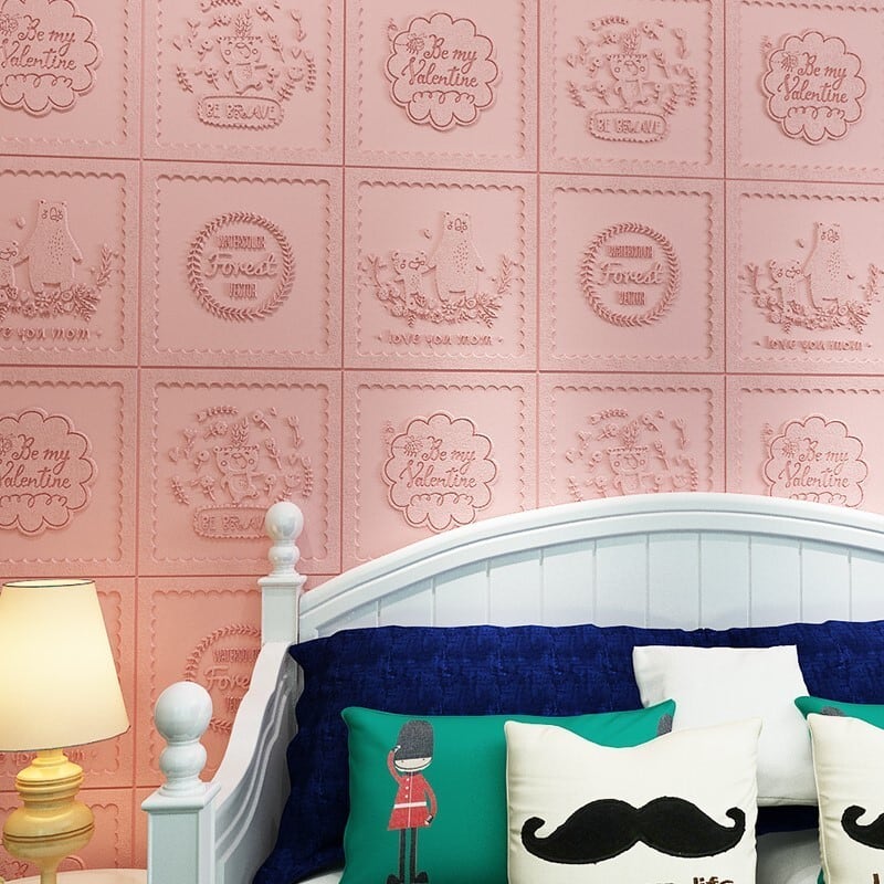 WS9-2背景壁 3D立体レンガ模様壁紙 防水 汚い防止 カビ防止 色選びます 50枚 ピンク