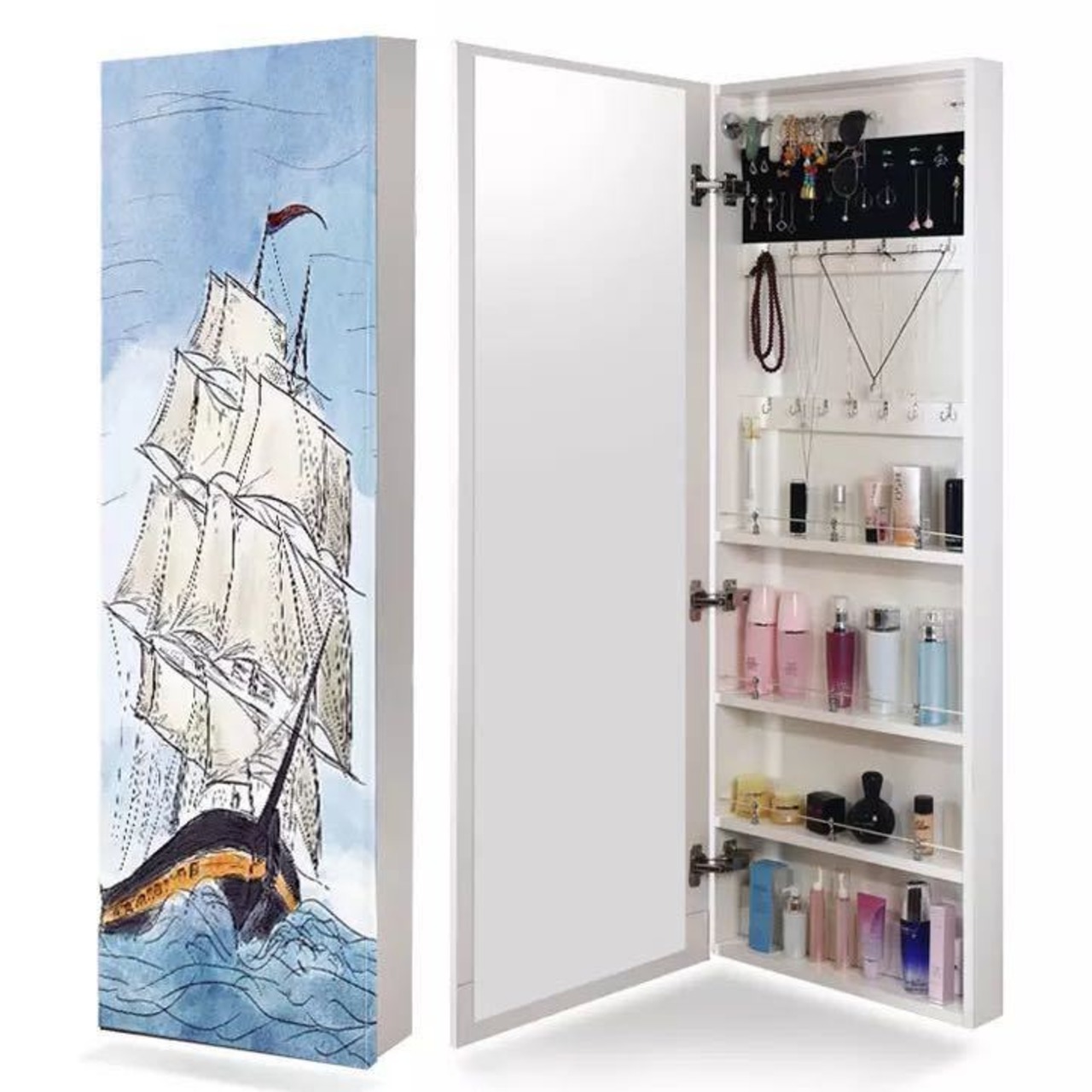 収納棚 スタンドミラー 全身鏡 ミラー付きラック 収納ラック ジュエリー収納ミラー