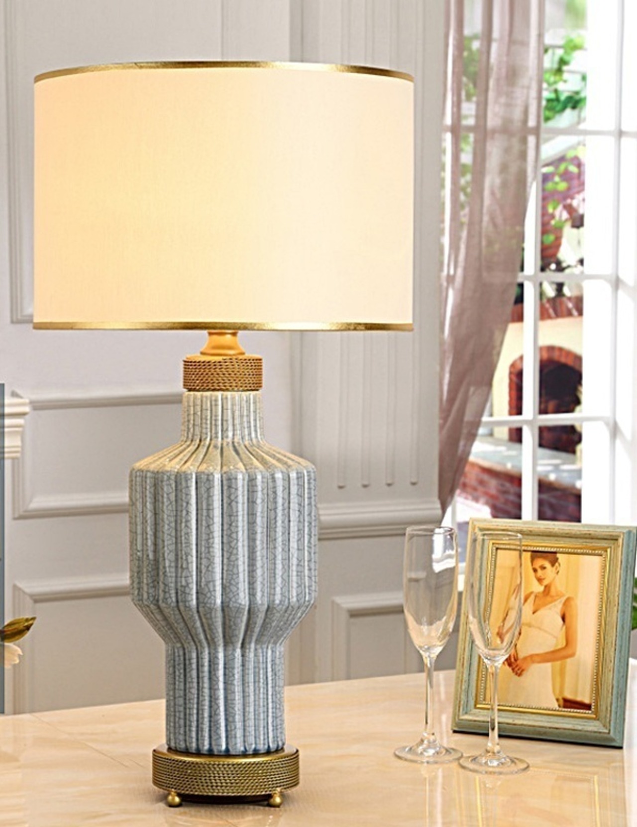 D89インテリア照明 テーブルスタンド 照明スタンド 卓上ステンド.高級陶器ステンド