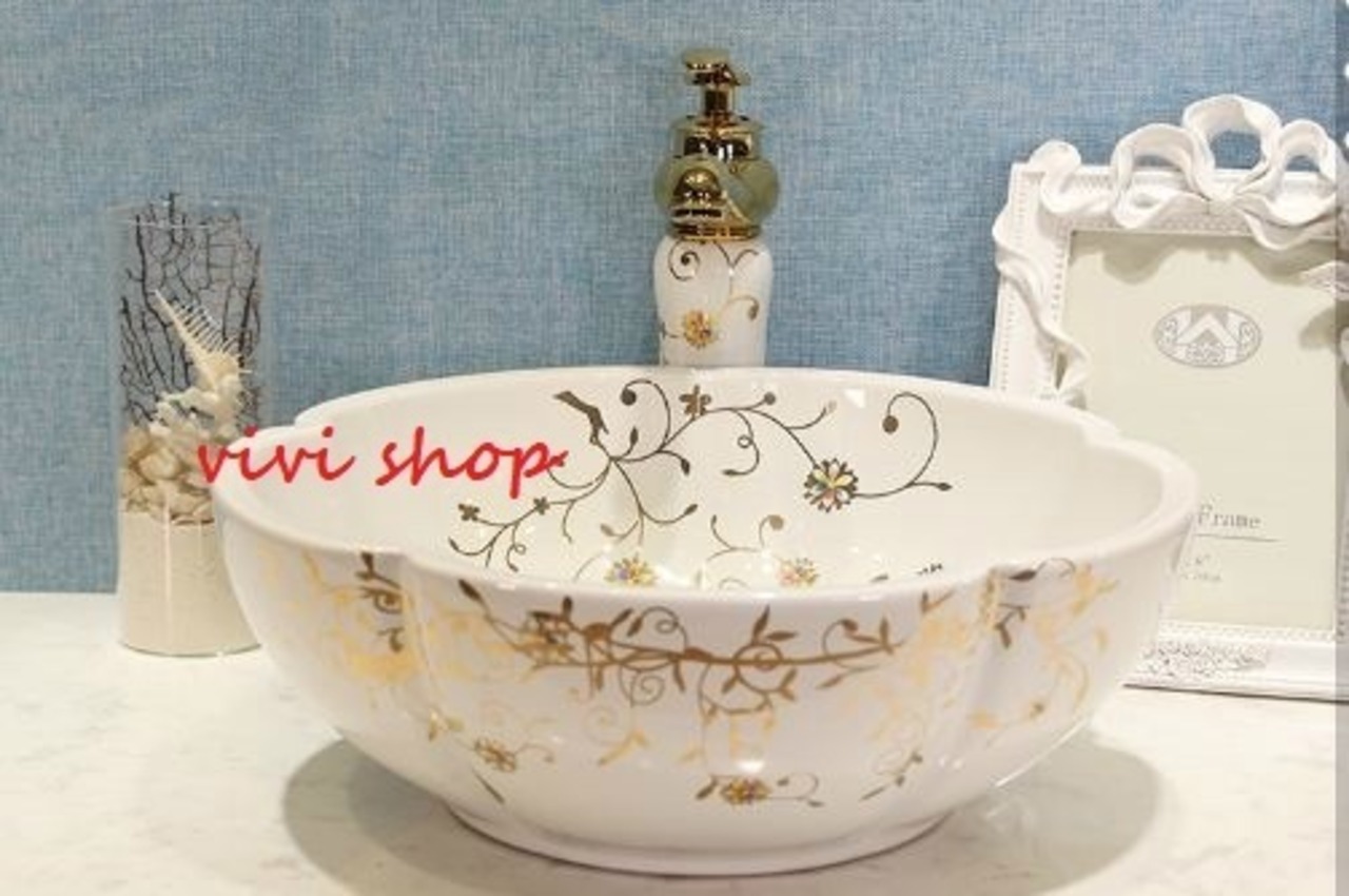 1220F003洗面ボウルセット 洗面ボール 陶器 手水鉢 手洗器 手洗い鉢 洗面器