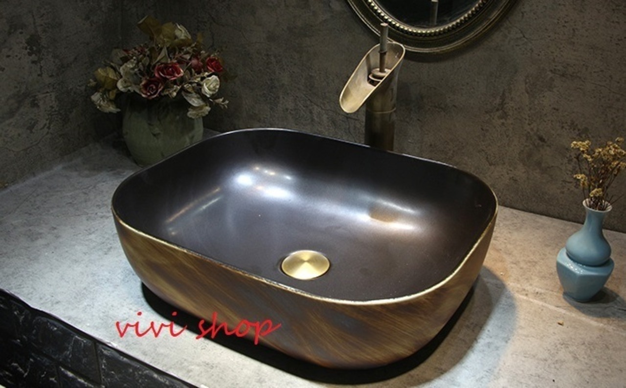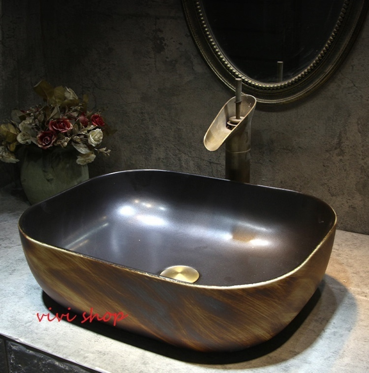 0121F153豪華洗面ボウルセット陶器洗面台 トイレ 手水鉢 手洗器 手洗い鉢 洗面器 蛇口 排水金具付き
