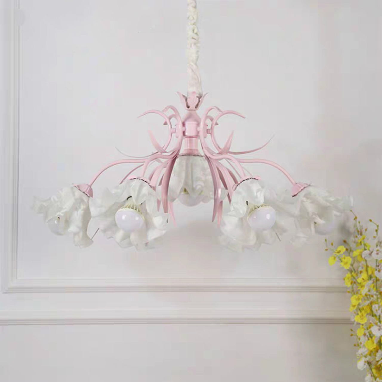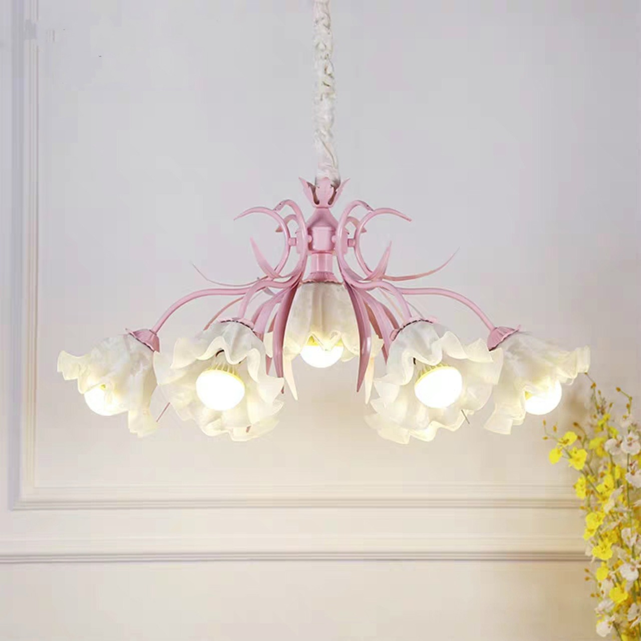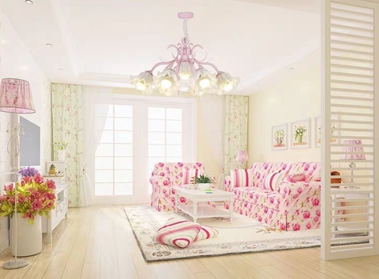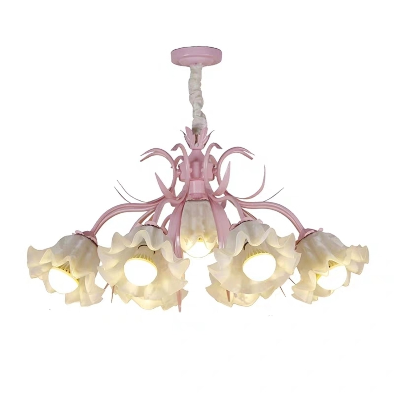 0720L20ペンダントライト.洋風照明 シャンデリア 北欧デザイン シーリングライト 天井照明 6+1灯ピンク