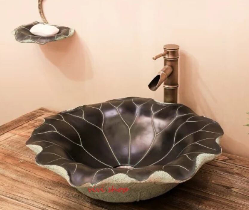 1220F38豪華洗面ボウルセット陶器洗面台 トイレ 手水鉢 手洗器 手洗い鉢 洗面器 蛇口 排水金具付き