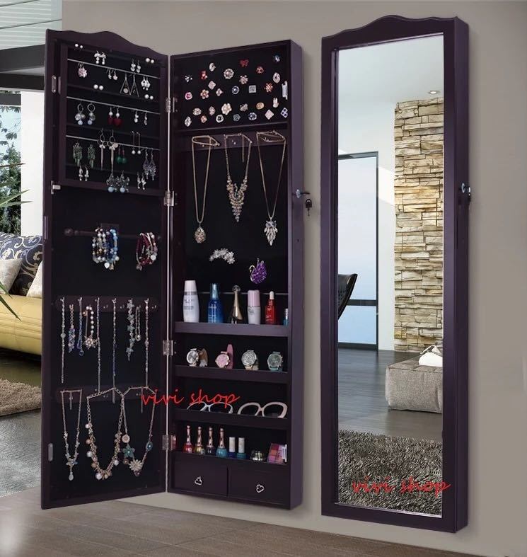 収納棚 スタンドミラー 全身鏡 ミラー付きラック .収納ラック ジュエリー収納ミラー