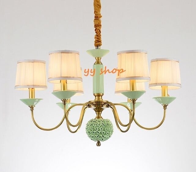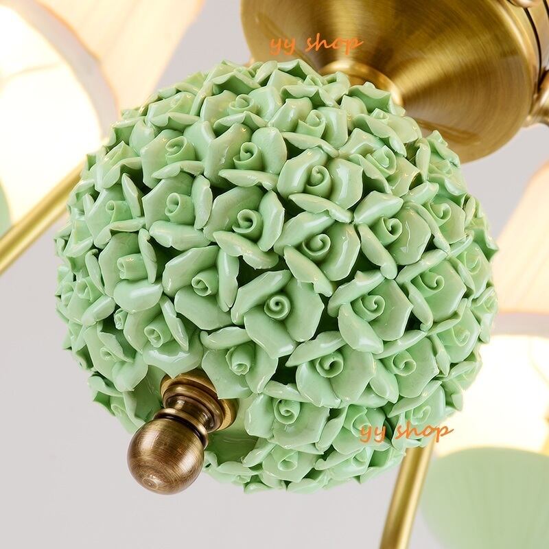 0720L63-6ペンダントライト.洋風照明 シャンデリア 北欧デザイン シーリングライト 天井照明.銅スタンド.陶器 6灯.