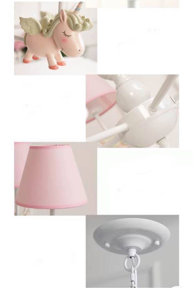 0720ペンダントライト.洋風照明 シャンデリア 北欧デザイン シーリングライト 天井照明 ユニコーン 3灯ピンク