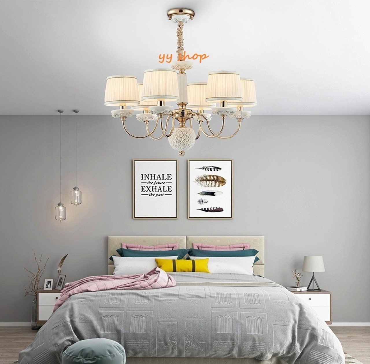 0720L64-6ペンダントライト.洋風照明 シャンデリア 北欧デザイン シーリングライト 天井照明.陶器6灯.
