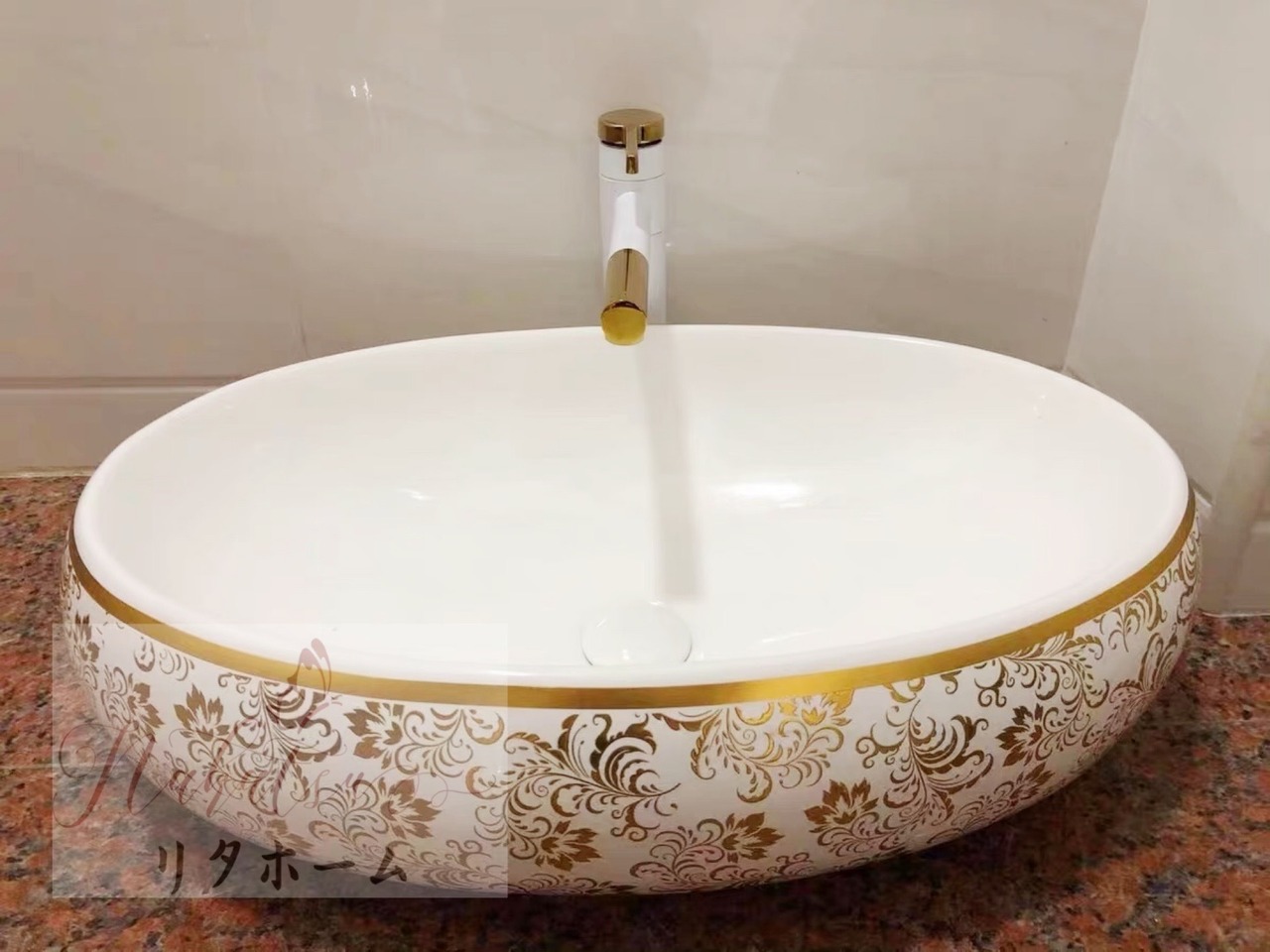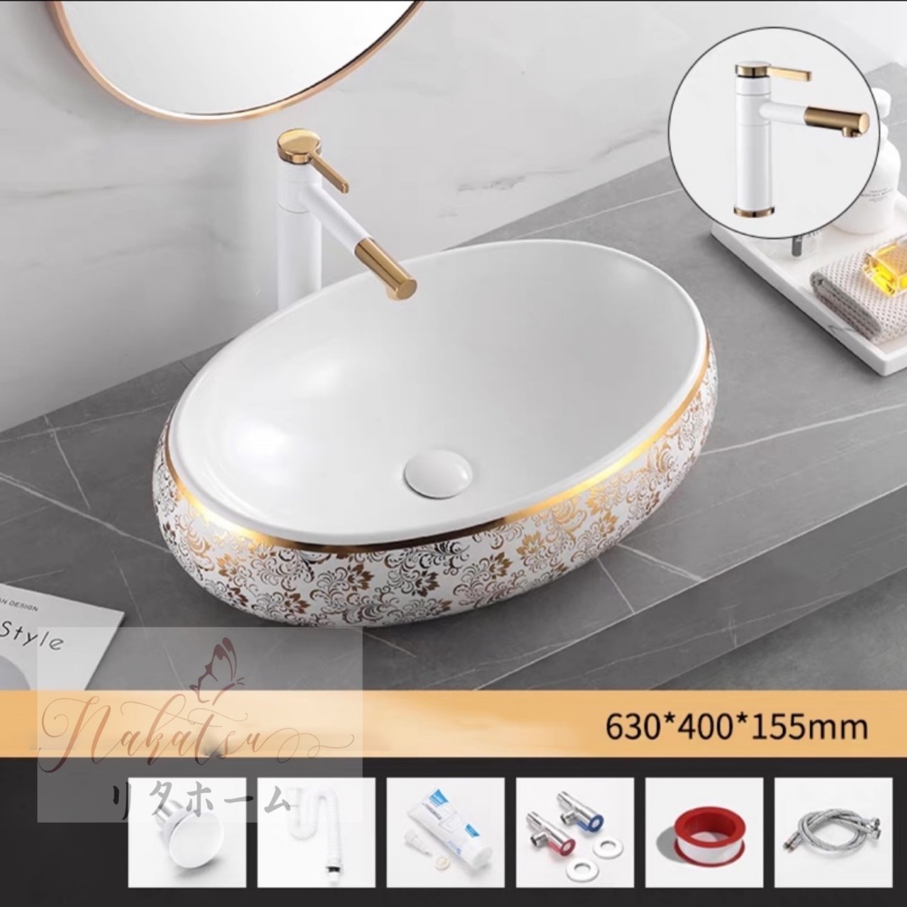 高級洗面台 洗面ボウルセット .洗面ボール 陶器 手水鉢 蛇口 排水金具付き