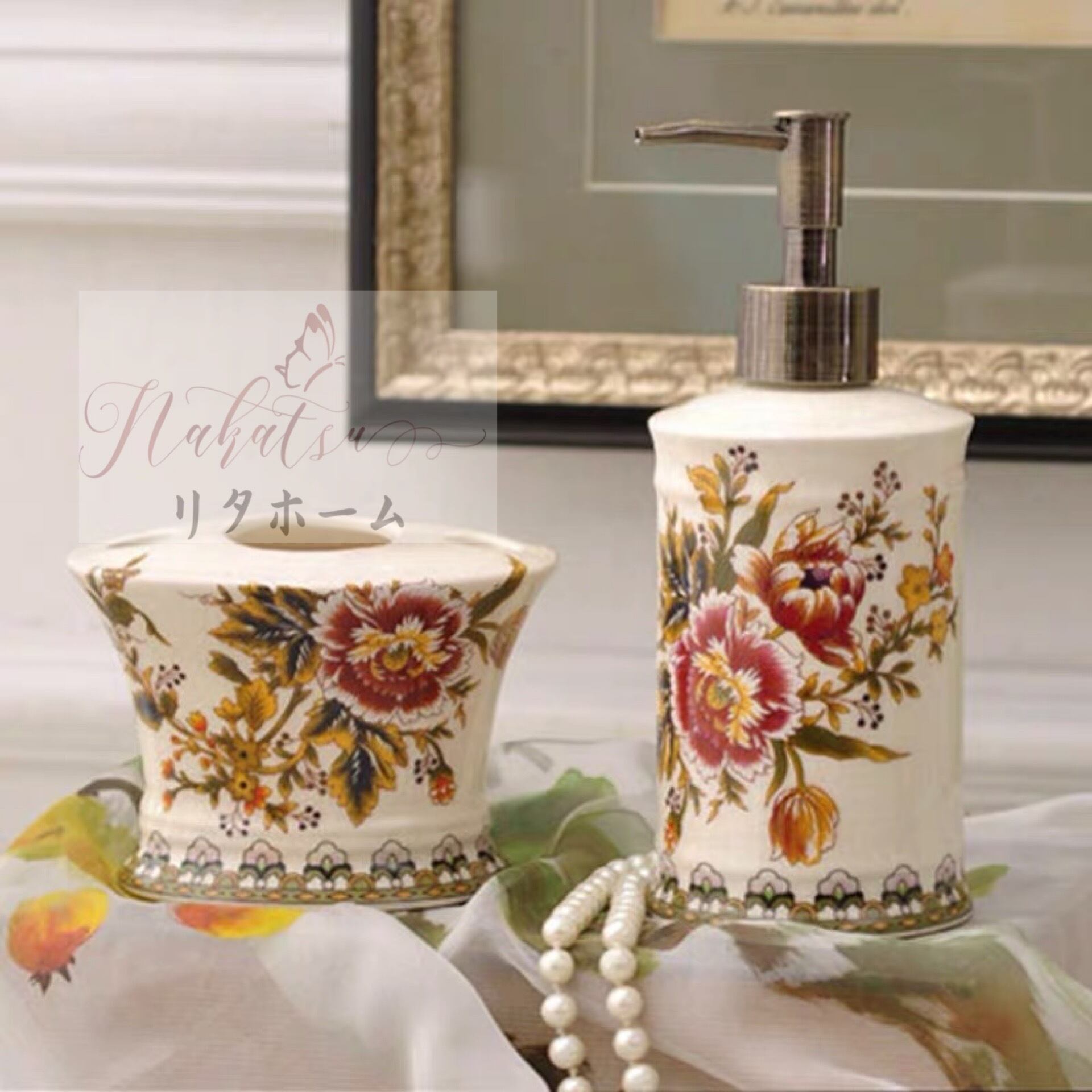 花柄サニタリー5点セット ヨーロッパ風 ディスペンサー 歯ブラシスタンド洗面所