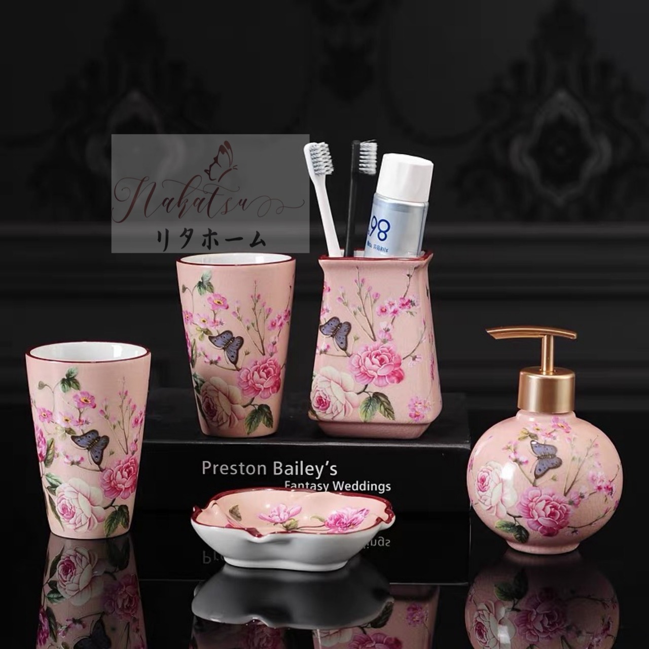 花柄サニタリー6点セット ヨーロッパ風 ディスペンサー 歯ブラシスタンド洗面所