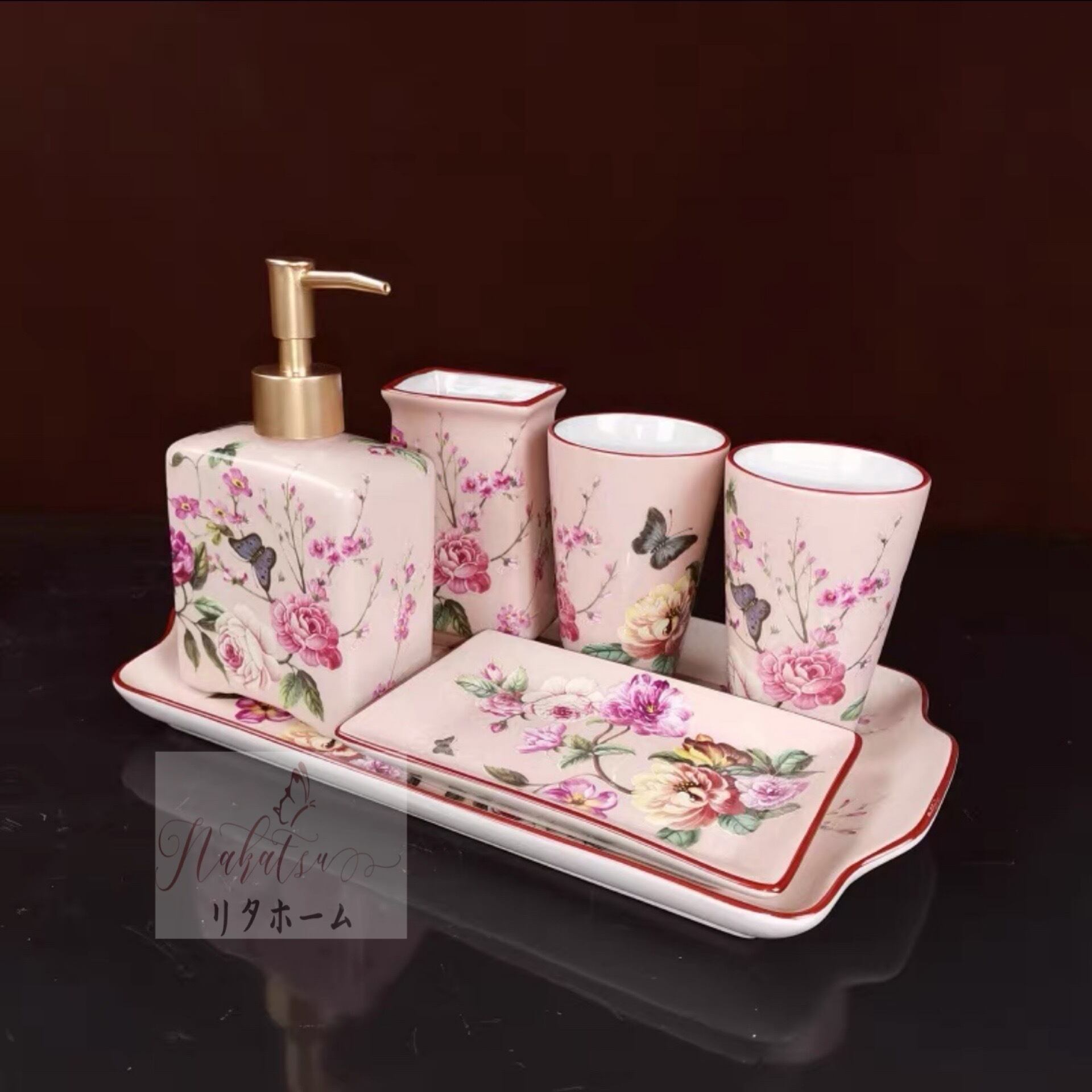 花柄サニタリー6点セット ヨーロッパ風 ディスペンサー 歯ブラシスタンド洗面所