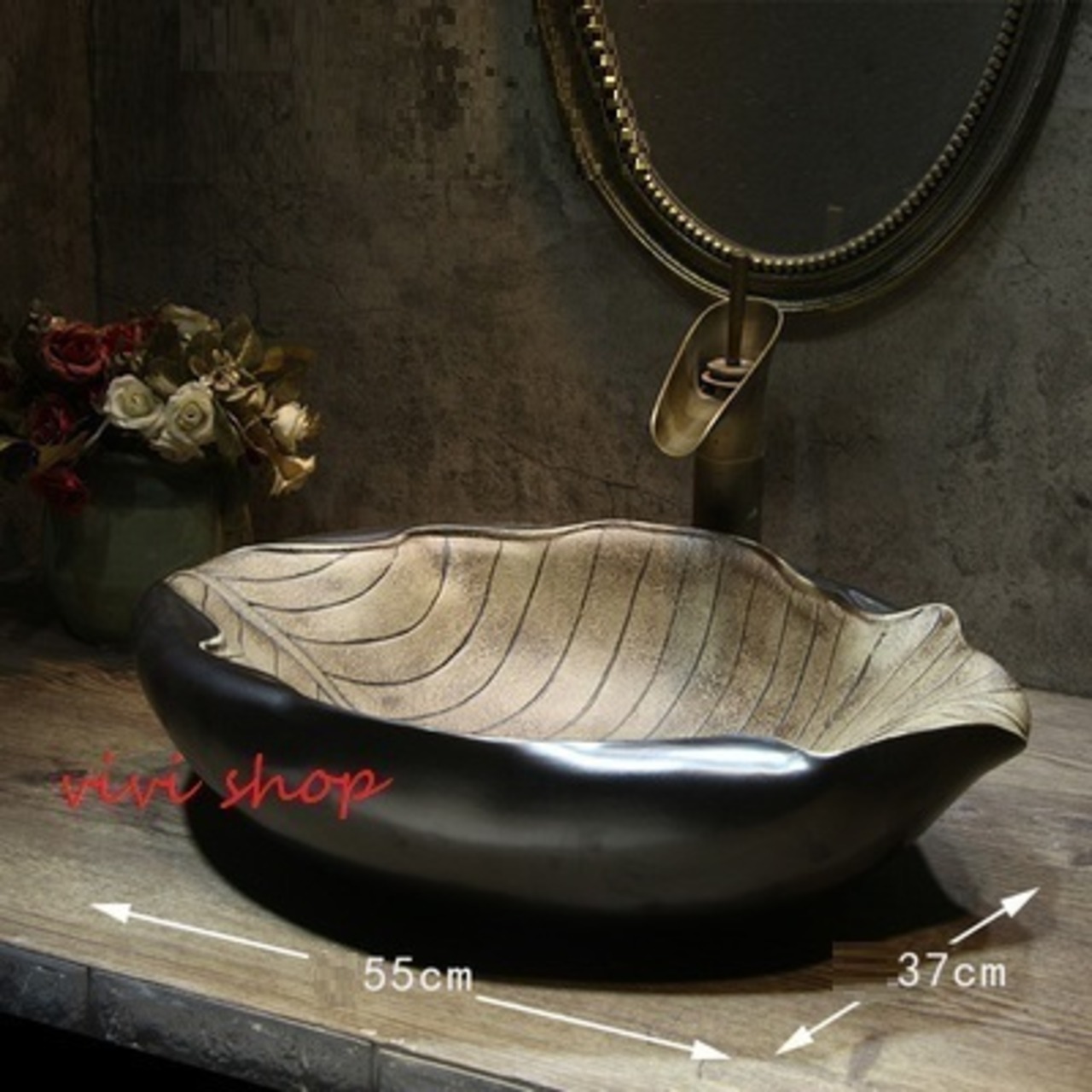 0121F166-2豪華洗面ボウルセット陶器洗面台 トイレ 手水鉢 手洗器 手洗い鉢 洗面器 蛇口 排水金具付き