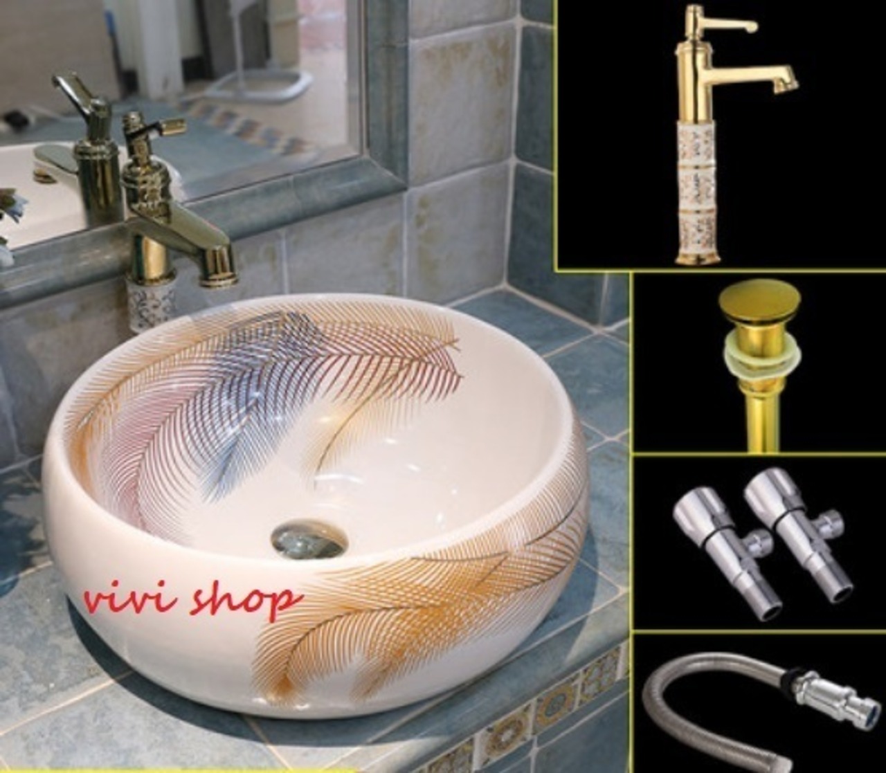 1220F135洗面ボウルセット 洗面ボール 陶器 手水鉢 手洗器 手洗い鉢 洗面器