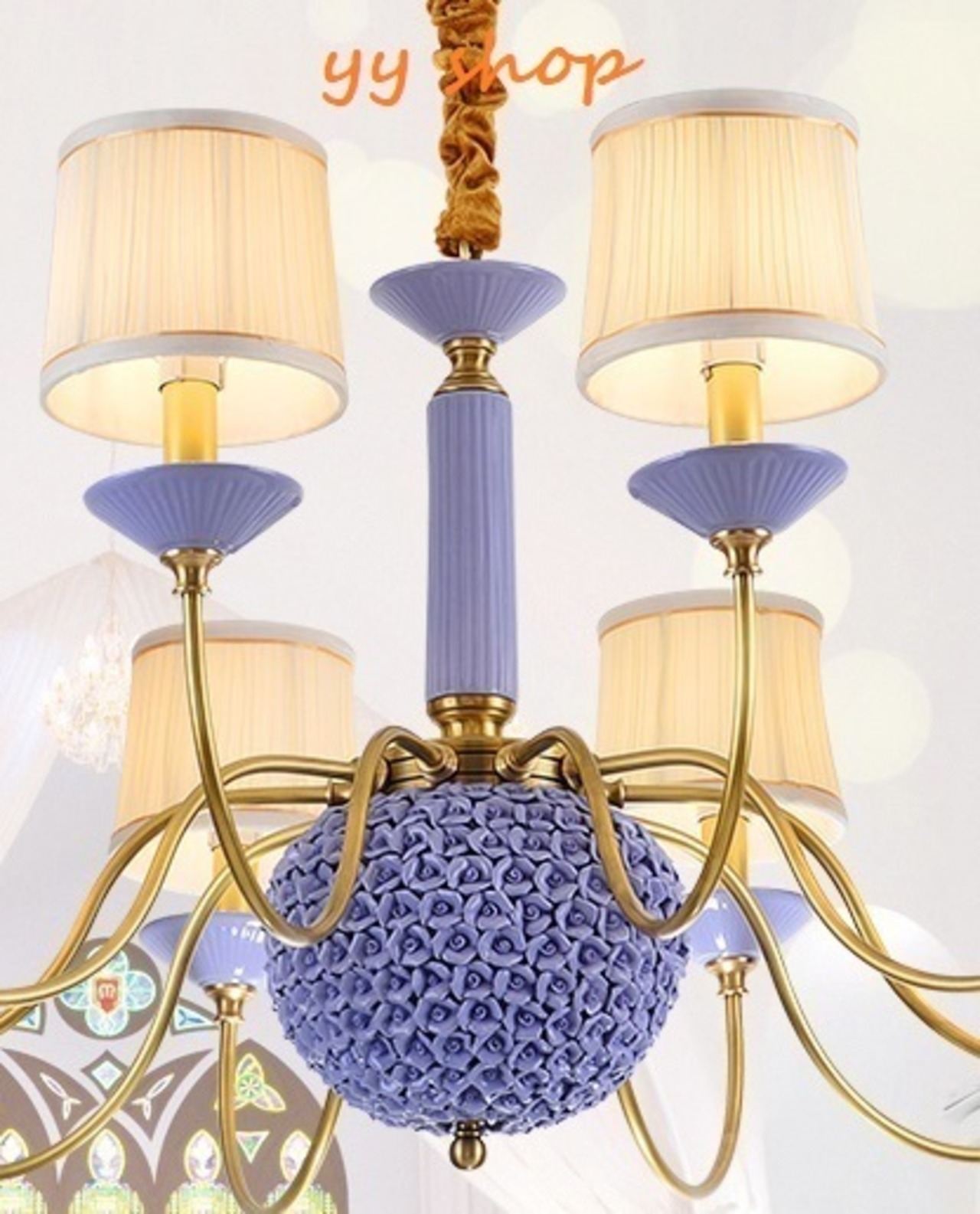 0720L63-8ペンダントライト.洋風照明 シャンデリア 北欧デザイン シーリングライト 天井照明.銅スタンド.陶器 8灯