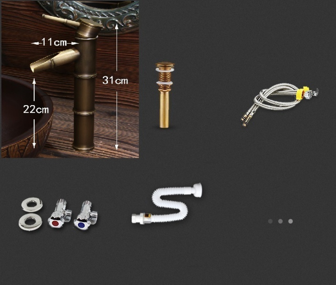 0121F167豪華洗面ボウルセット陶器洗面台 トイレ 手水鉢 手洗器 手洗い鉢 洗面器 蛇口 排水金具付き