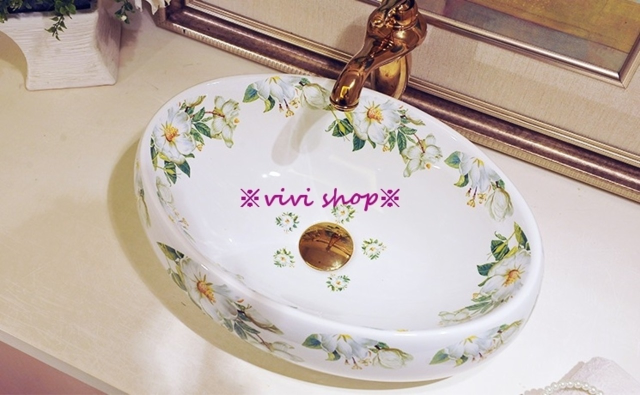 1220F141-3豪華洗面ボウルセット陶器洗面台 トイレ 手水鉢 手洗器 手洗い鉢 洗面器 蛇口 排水金具付き