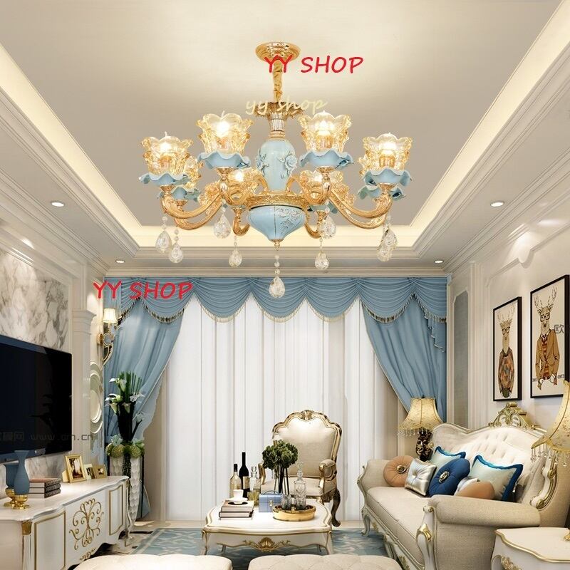 0720L60-8ペンダントライト.洋風照明 シャンデリア 北欧デザイン シーリングライト 天井照明.水晶.陶器8灯