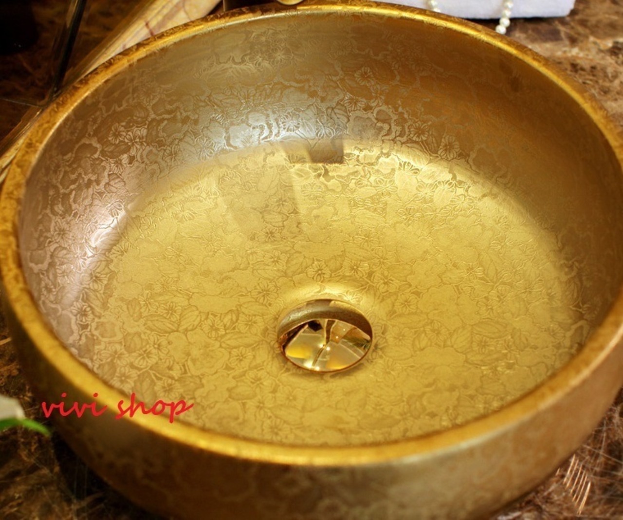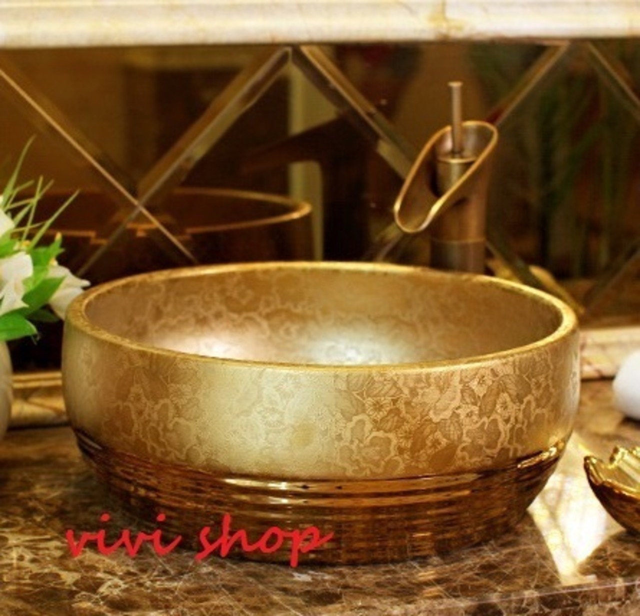 0121F174-2豪華洗面ボウルセット陶器洗面台 トイレ 手水鉢 手洗器 手洗い鉢 洗面器 蛇口 排水金具付き