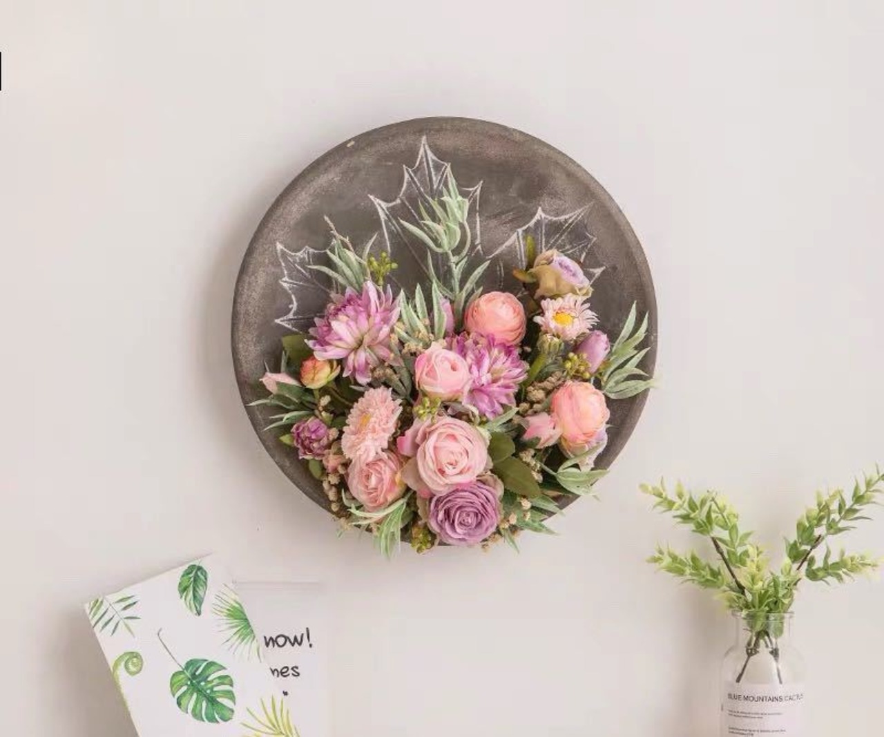 壁飾り 人工観葉植物 壁掛けインテリア ディスプレイ 壁掛けミックスグリーン 造花 壁掛け.