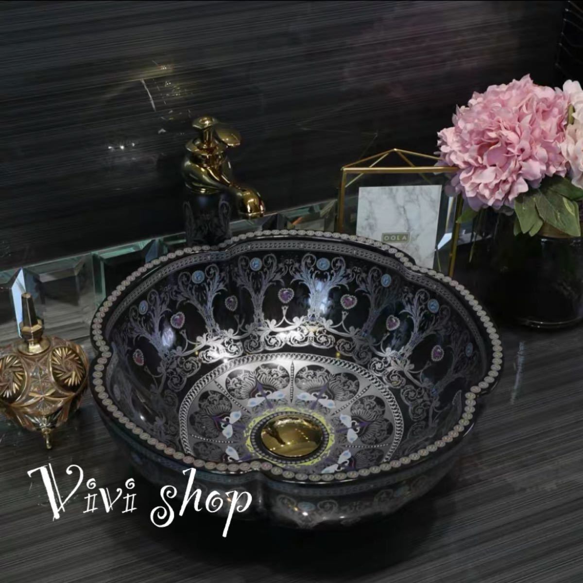 豪華洗面ボウルセット陶器洗面台 トイレ 手水鉢 手洗器 手洗い鉢 洗面器.蛇口 排水金具付き