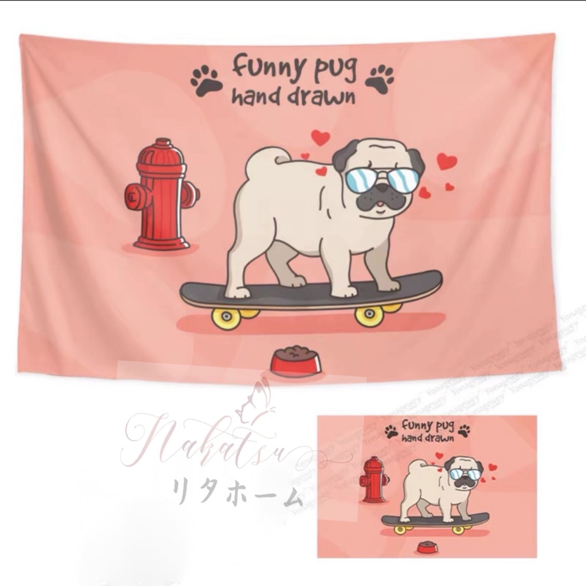 パグ雑貨 写真背景布 180x120cm パグ布景布 壁飾り サイズオーダー可能