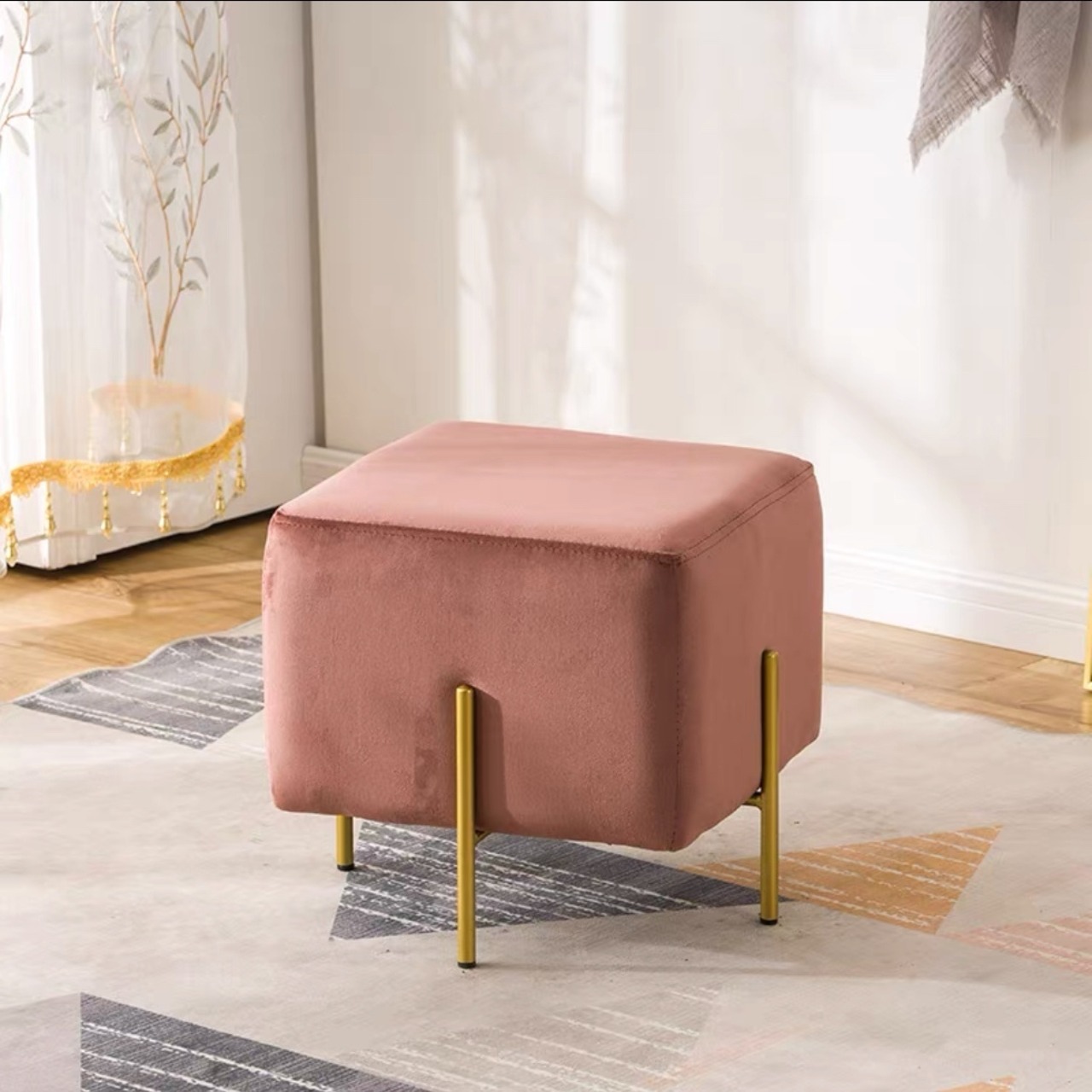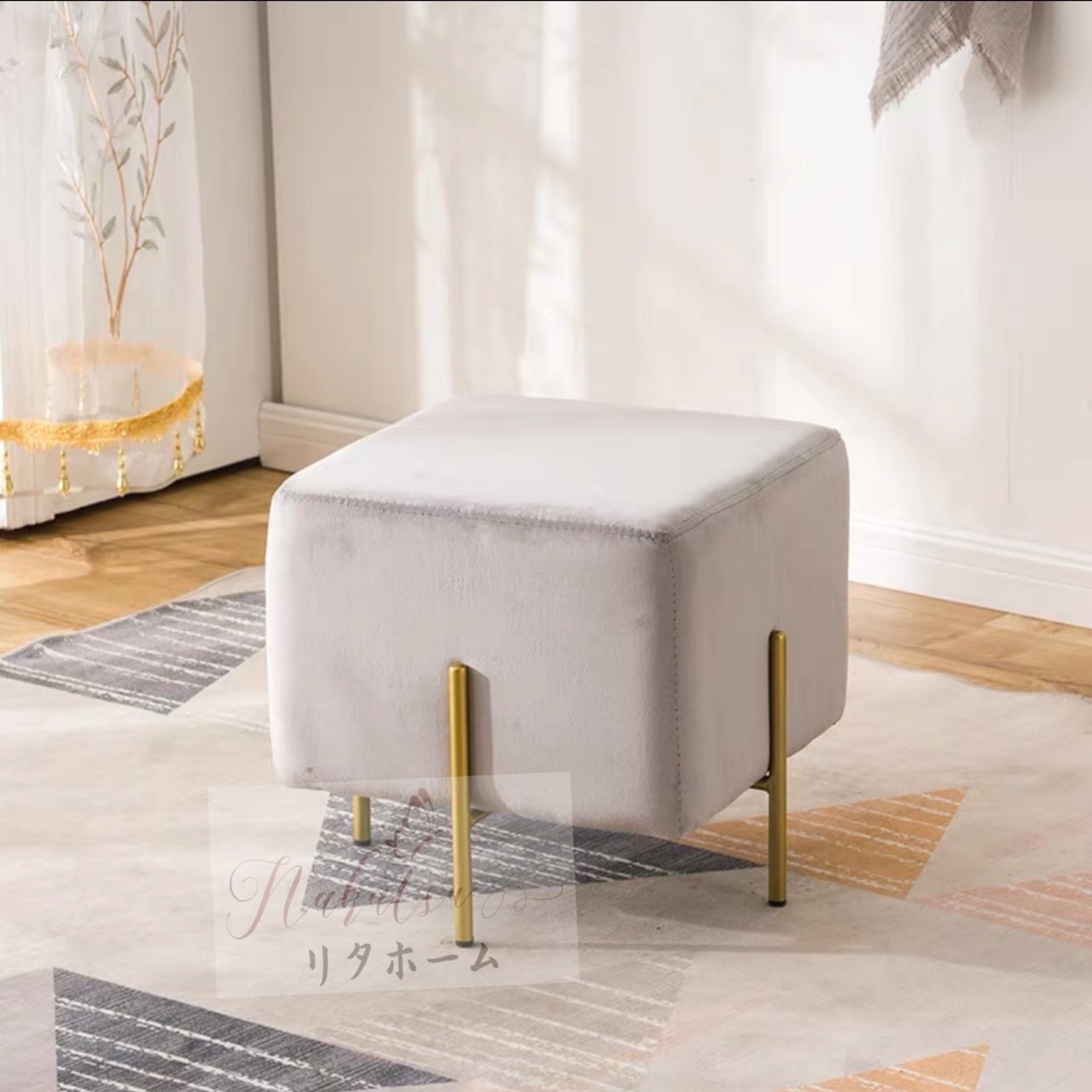 色選択可能 ベルベット座面 ステンレス チタン鍍金 低い腰掛け 小さなスツール