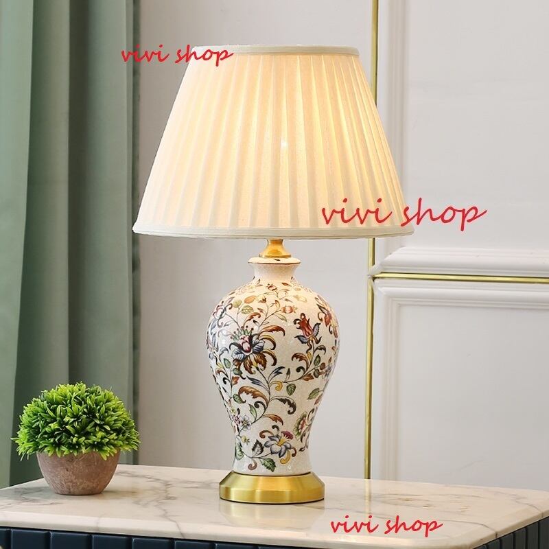 1220照明スタンドライト テーブルランプ デスクライト 卓上ステンド 高級陶器ステンド.銅スタンド