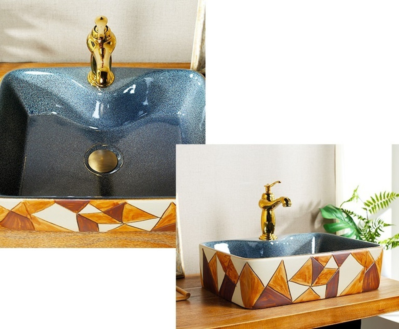 0121F173-3豪華洗面ボウルセット陶器洗面台 トイレ 手水鉢 手洗器 手洗い鉢 洗面器 蛇口 排水金具付き