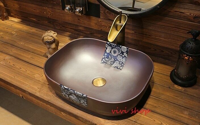 1220豪華洗面ボウルセット陶器洗面台 トイレ 手水鉢 手洗器 手洗い鉢 洗面器 蛇口 排水金具付き