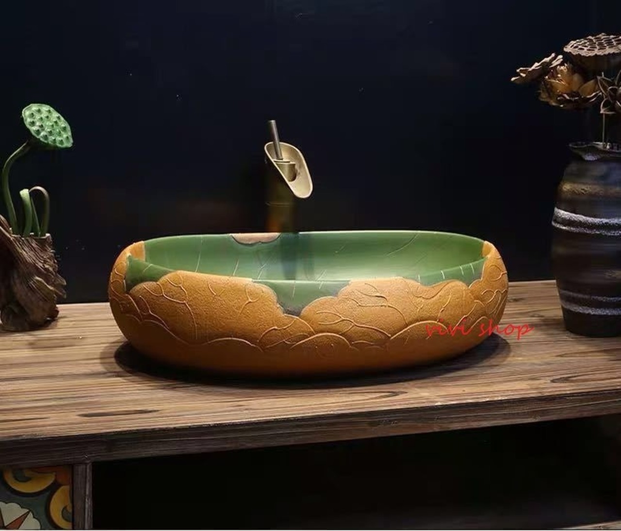 1220豪華洗面ボウルセット陶器洗面台 トイレ 手水鉢 手洗器 手洗い鉢 洗面器 蛇口 排水金具付き